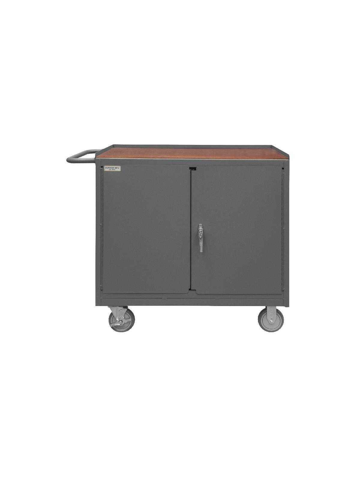Bench cabinets are constructed of 14 gauge steel. Convenient sturdy work surface with back and end stops on the work surface prevents parts from falling off during transport (MT units not included). Tubular handle for easy maneuverability. Cabinet doors have a 3 point locking system with 4 keys. Rolls smoothly on 5" polyurethane bolt-on casters, (2) swivel with side brakes and (2) rigid. 36"W model has 1,200 lbs. capacity. 48"W model has 2,000 lbs. capacity and includes a floor lock to keep the unit in place while you work. FOB Shipping Point.