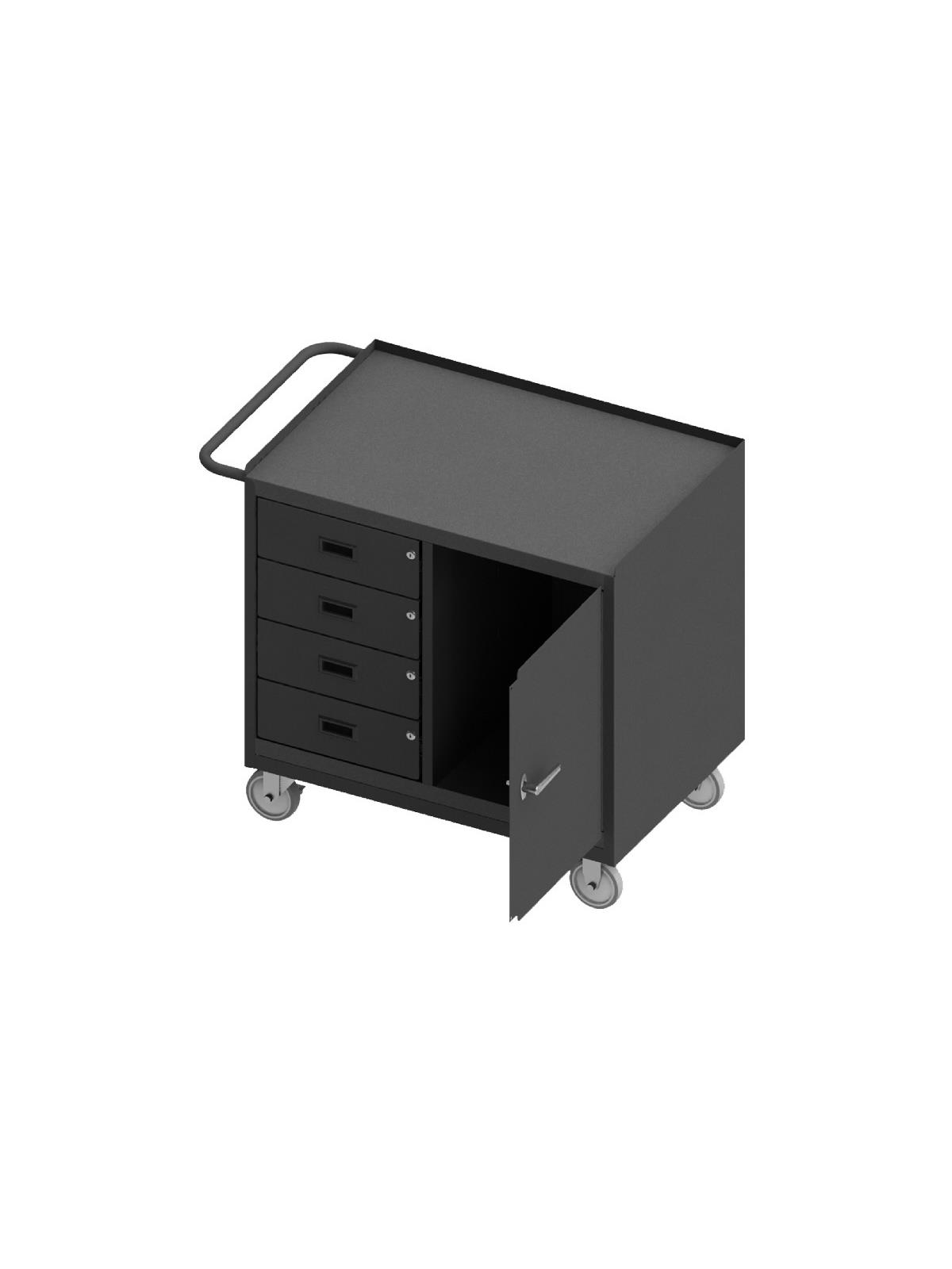 Bench cabinets are constructed of 14 gauge steel. Convenient sturdy work surface with back and end stops on the work surface prevents parts from falling off during transport (MT units not included). Tubular handle for easy maneuverability. Cabinet doors have a 3 point locking system with 4 keys. Rolls smoothly on 5" polyurethane bolt-on casters, (2) swivel with side brakes and (2) rigid. 36"W model has 1,200 lbs. capacity. 48"W model has 2,000 lbs. capacity and includes a floor lock to keep the unit in place while you work. FOB Shipping Point.