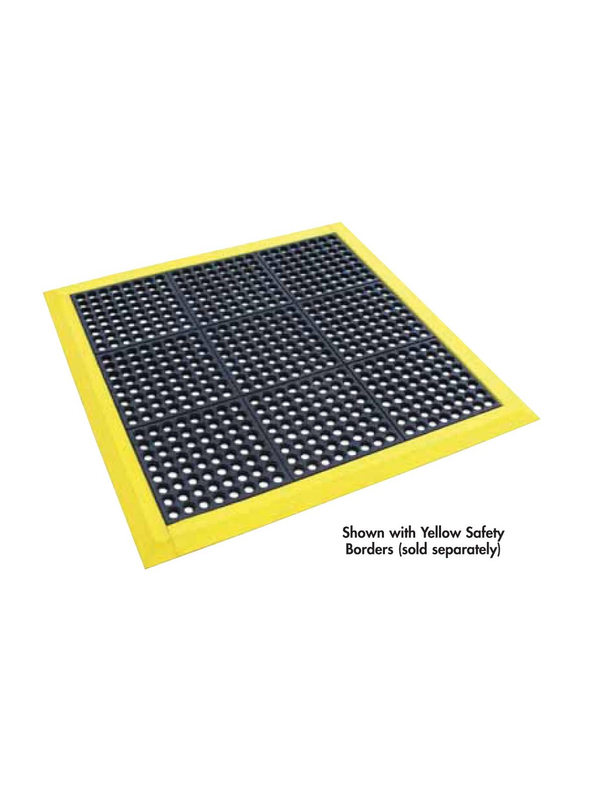 This interlocking drainage mat contains the highest level of grease and petroleum resistance and is made of 100% nitrile. It's ideal for demanding industrial and kitchen environments exposed to oil and grease spills. Modular 3 x 3' mats are lightweight and easy to handle for easy clean-up. Will not deteriorate from the effect of petroleum, oils and fats. Nib backing elevates mat above the surface for improved drainage and large holes allows debris to fall through. Choose the gritted surface for extra traction. FOB Shipping Point.