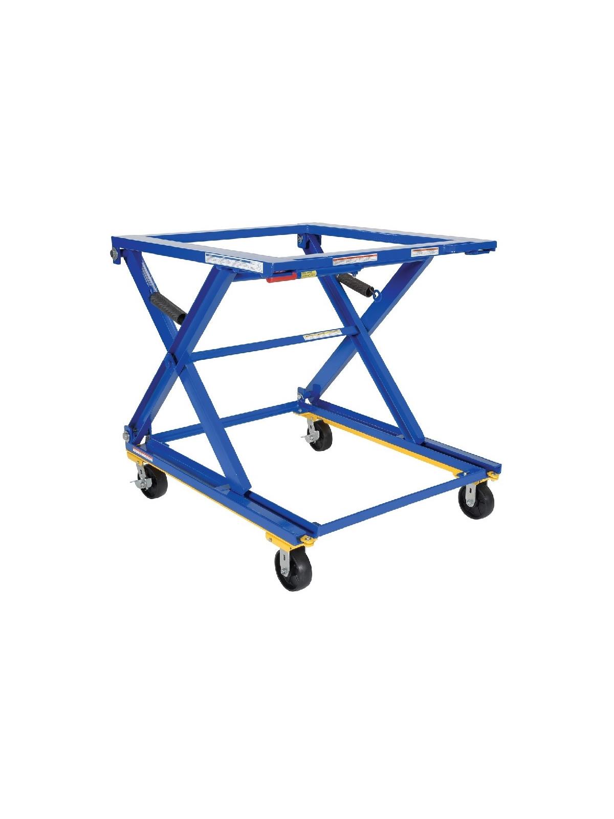 The Adjustable Height Pallet Stands are designed to manually adjust to three different ergonomic working heights. Unit includes a three position manual adjusting bar with spring assist to help raise and lower the deck. The Pallet Stand must be empty when adjusting the height. Unit is welded steel construction with baked-in powder-coated tough finish. The optional bolt-on manual carousel, suffix CA, is 40" in diameter by 2" tall and rotates 360°. The caster feature, suffix CK, consists of 6" x 2" glass-filled nylon two (2) rigid and two (2) swivel casters with brake. FOB Shipping Point.