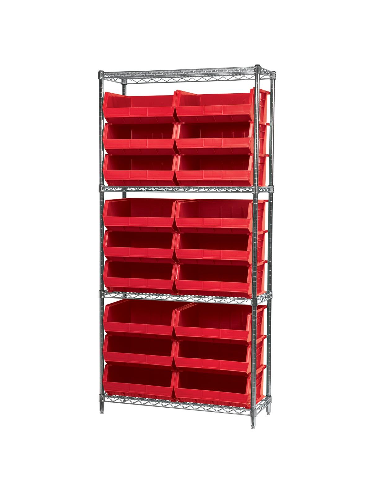 A wide variety of shelf configurations are possible with three sizes of shelving available. Durable AkroBins® feature a curved bottom hopper front, to enable easy access of small parts. Bins available in Blue, Red, Yellow, Stone, Green, or Semi-Clear. FOB Shipping Point.
