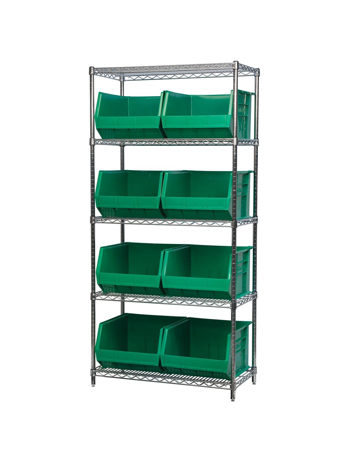 A wide variety of shelf configurations are possible with three sizes of shelving available. Durable AkroBins® feature a curved bottom hopper front, to enable easy access of small parts. Bins available in Blue, Red, Yellow, Stone, Green, or Semi-Clear. FOB Shipping Point.