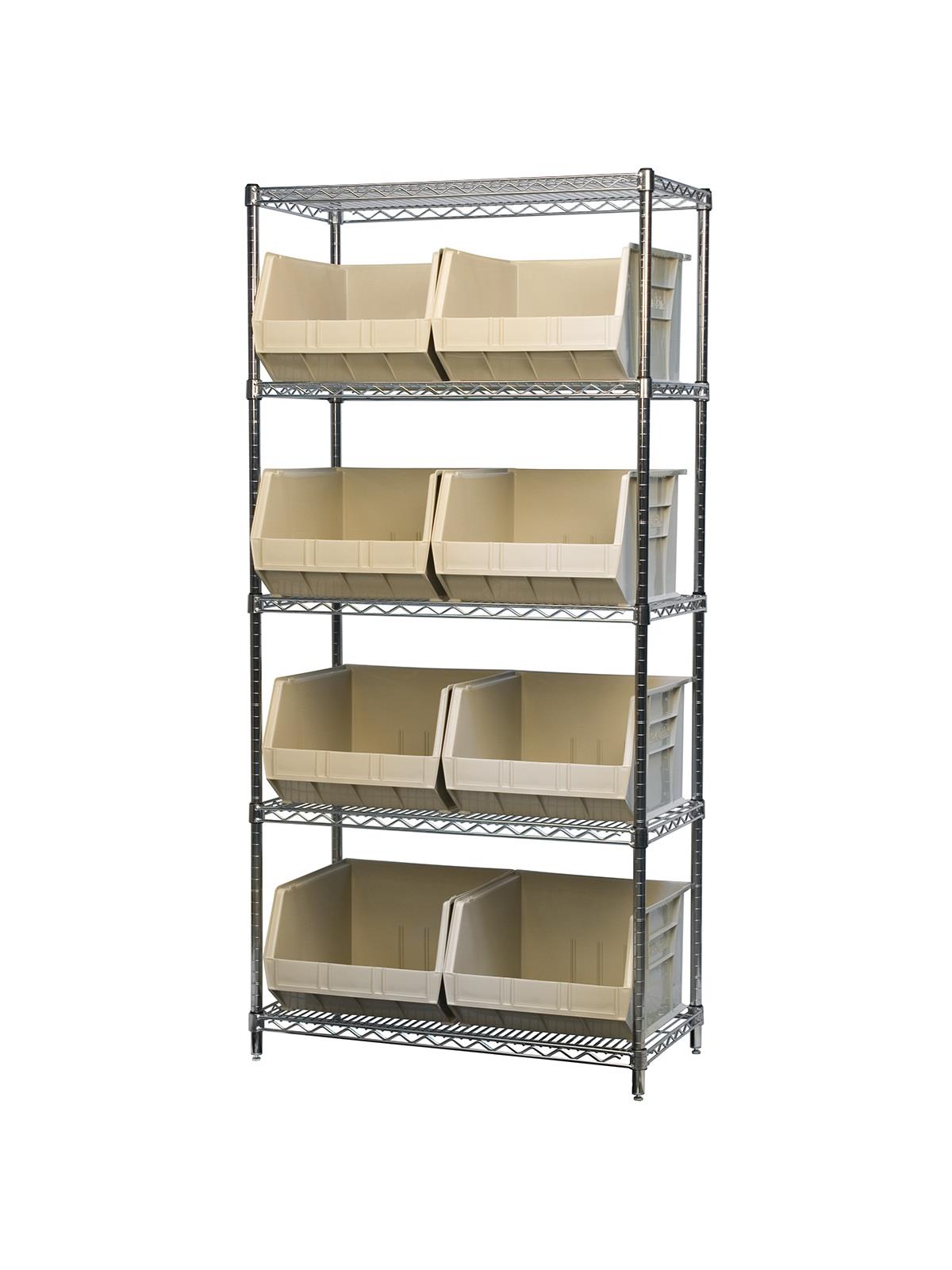 A wide variety of shelf configurations are possible with three sizes of shelving available. Durable AkroBins® feature a curved bottom hopper front, to enable easy access of small parts. Bins available in Blue, Red, Yellow, Stone, Green, or Semi-Clear. FOB Shipping Point.