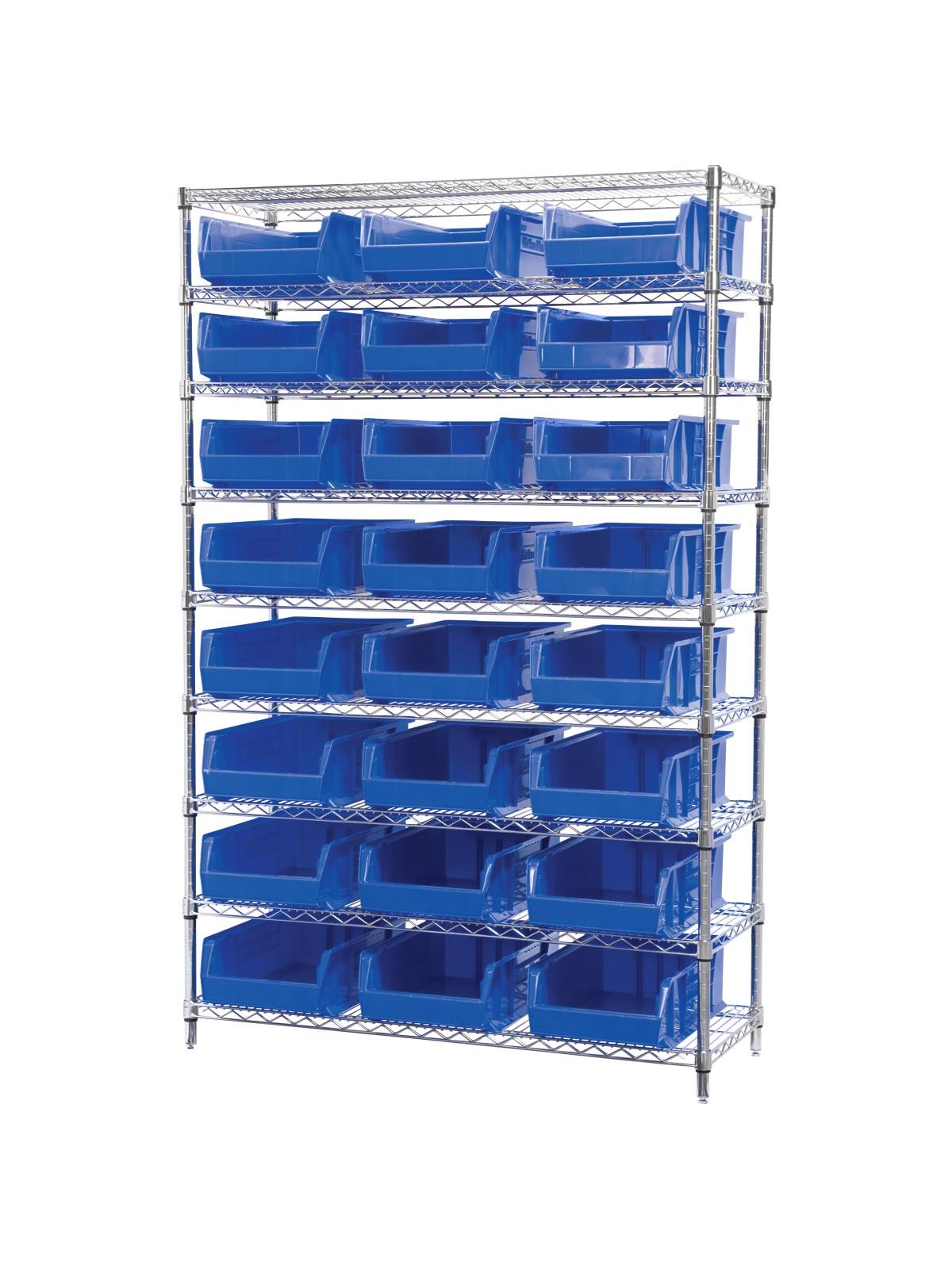 A wide variety of shelf configurations are possible with three sizes of shelving available. Durable AkroBins® feature a curved bottom hopper front, to enable easy access of small parts. Bins available in Blue, Red, Yellow, Stone, Green, or Semi-Clear. FOB Shipping Point.