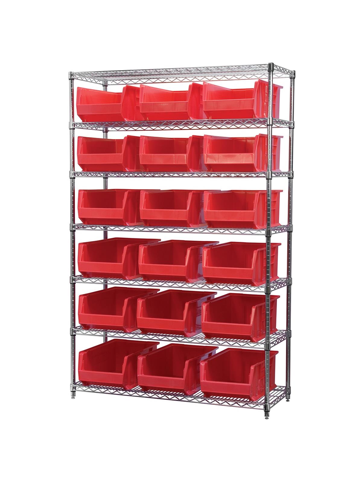 A wide variety of shelf configurations are possible with three sizes of shelving available. Durable AkroBins® feature a curved bottom hopper front, to enable easy access of small parts. Bins available in Blue, Red, Yellow, Stone, Green, or Semi-Clear. FOB Shipping Point.