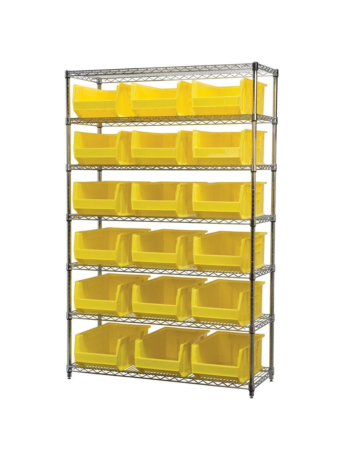 A wide variety of shelf configurations are possible with three sizes of shelving available. Durable AkroBins® feature a curved bottom hopper front, to enable easy access of small parts. Bins available in Blue, Red, Yellow, Stone, Green, or Semi-Clear. FOB Shipping Point.