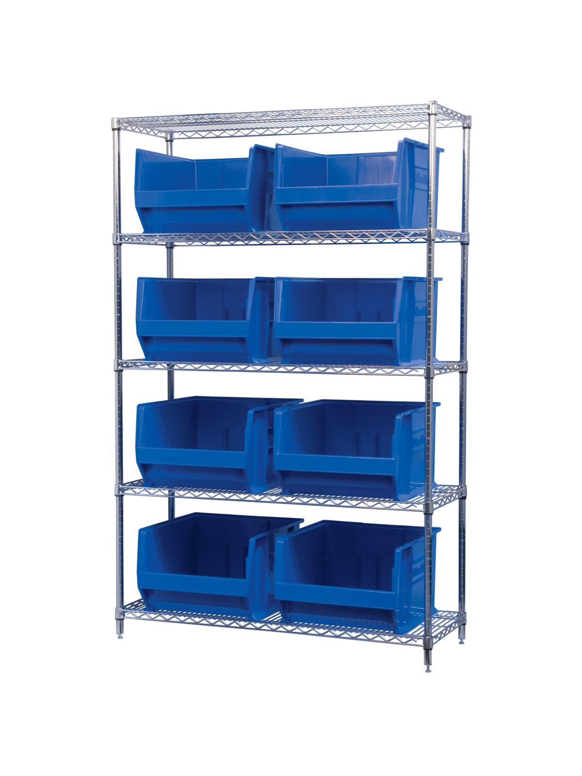 A wide variety of shelf configurations are possible with three sizes of shelving available. Durable AkroBins® feature a curved bottom hopper front, to enable easy access of small parts. Bins available in Blue, Red, Yellow, Stone, Green, or Semi-Clear. FOB Shipping Point.