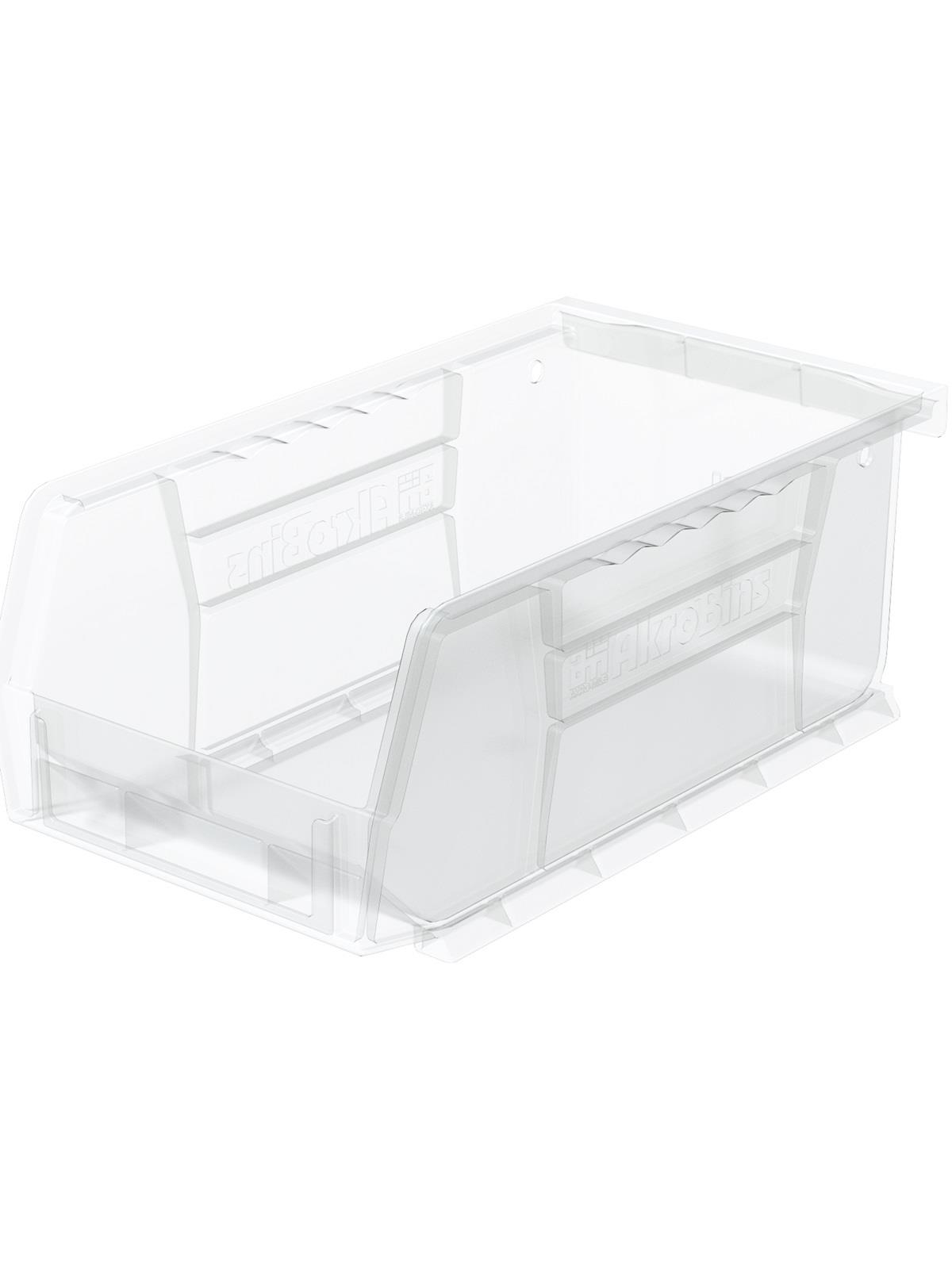 AkroBins are heavy-duty and securely stack on top of each other, sit on shelving, and hang from Akro-Mils racks, panels, rails and carts. Unaffected by weak acids and alkalis the sturdy one piece construction is water, rust and corrosion-proof. Finger grip allows for easy handling. Large label slot for easy identification of contents. Autoclavable up to 250° F. Guaranteed not to crack or break under normal load conditions as stated in the 1-year limited warranty. Optional dividers and labels available, see Related Items tab. AkroBins available in Red, Yellow, Blue, Green, Black, Stone, and Semi-Clear. FOB Shipping Point.