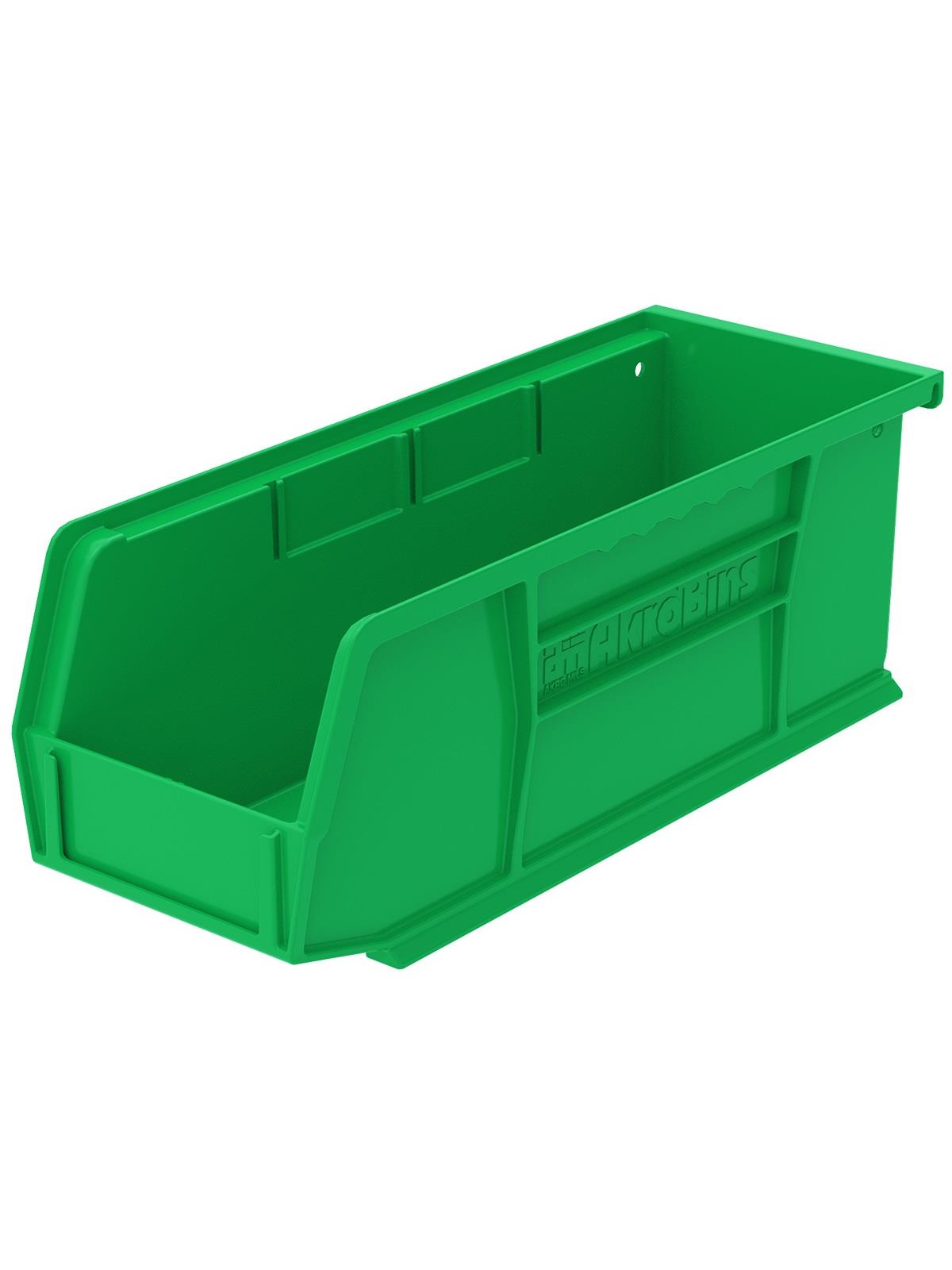 AkroBins are heavy-duty and securely stack on top of each other, sit on shelving, and hang from Akro-Mils racks, panels, rails and carts. Unaffected by weak acids and alkalis the sturdy one piece construction is water, rust and corrosion-proof. Finger grip allows for easy handling. Large label slot for easy identification of contents. Autoclavable up to 250° F. Guaranteed not to crack or break under normal load conditions as stated in the 1-year limited warranty. Optional dividers and labels available, see Related Items tab. AkroBins available in Red, Yellow, Blue, Green, Black, Stone, and Semi-Clear. FOB Shipping Point.