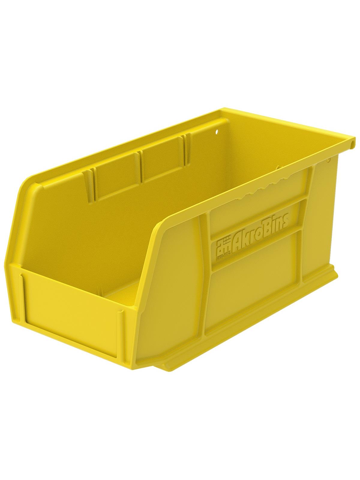 AkroBins are heavy-duty and securely stack on top of each other, sit on shelving, and hang from Akro-Mils racks, panels, rails and carts. Unaffected by weak acids and alkalis the sturdy one piece construction is water, rust and corrosion-proof. Finger grip allows for easy handling. Large label slot for easy identification of contents. Autoclavable up to 250° F. Guaranteed not to crack or break under normal load conditions as stated in the 1-year limited warranty. Optional dividers and labels available, see Related Items tab. AkroBins available in Red, Yellow, Blue, Green, Black, Stone, and Semi-Clear. FOB Shipping Point.