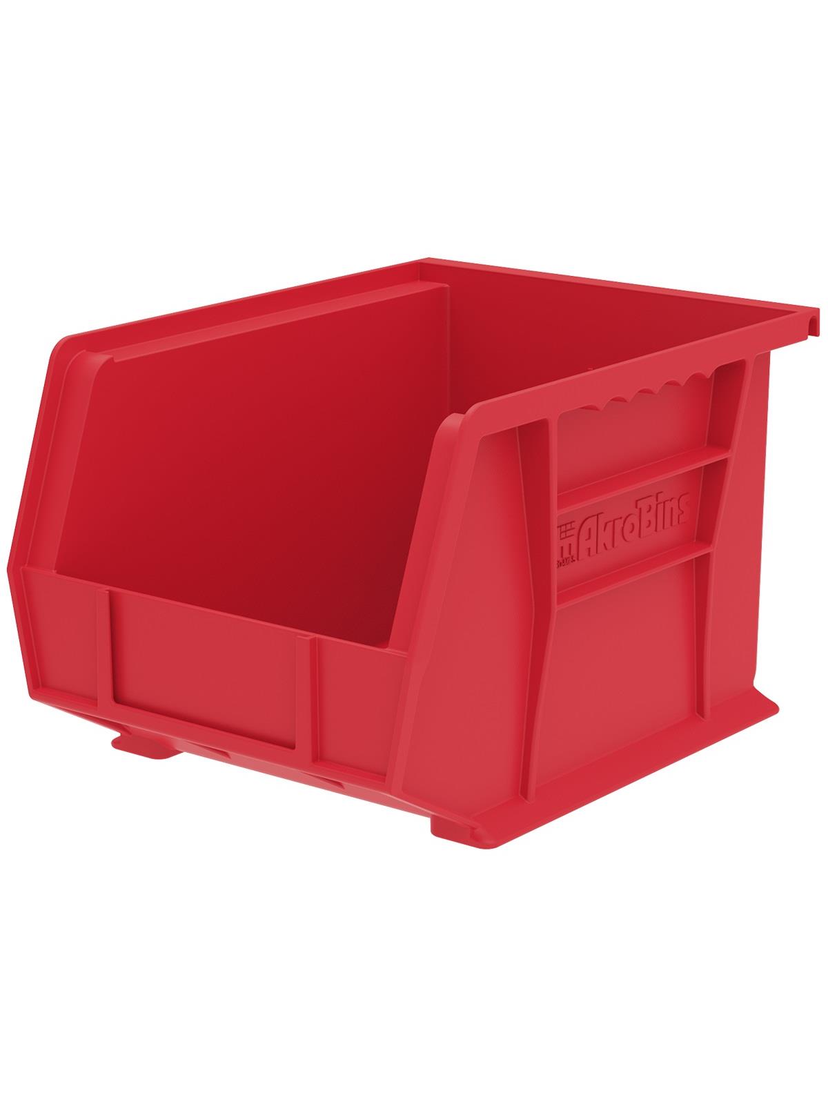 AkroBins are heavy-duty and securely stack on top of each other, sit on shelving, and hang from Akro-Mils racks, panels, rails and carts. Unaffected by weak acids and alkalis the sturdy one piece construction is water, rust and corrosion-proof. Finger grip allows for easy handling. Large label slot for easy identification of contents. Autoclavable up to 250° F. Guaranteed not to crack or break under normal load conditions as stated in the 1-year limited warranty. Optional dividers and labels available, see Related Items tab. AkroBins available in Red, Yellow, Blue, Green, Black, Stone, and Semi-Clear. FOB Shipping Point.