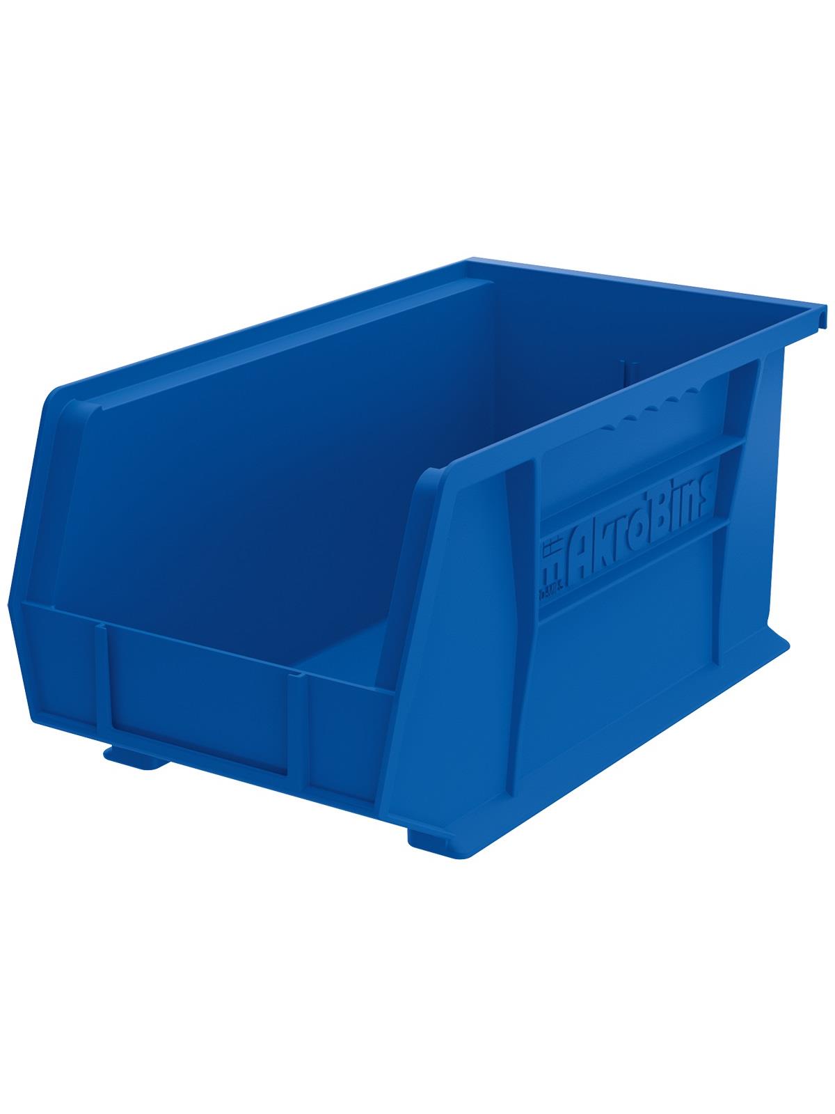 AkroBins are heavy-duty and securely stack on top of each other, sit on shelving, and hang from Akro-Mils racks, panels, rails and carts. Unaffected by weak acids and alkalis the sturdy one piece construction is water, rust and corrosion-proof. Finger grip allows for easy handling. Large label slot for easy identification of contents. Autoclavable up to 250° F. Guaranteed not to crack or break under normal load conditions as stated in the 1-year limited warranty. Optional dividers and labels available, see Related Items tab. AkroBins available in Red, Yellow, Blue, Green, Black, Stone, and Semi-Clear. FOB Shipping Point.
