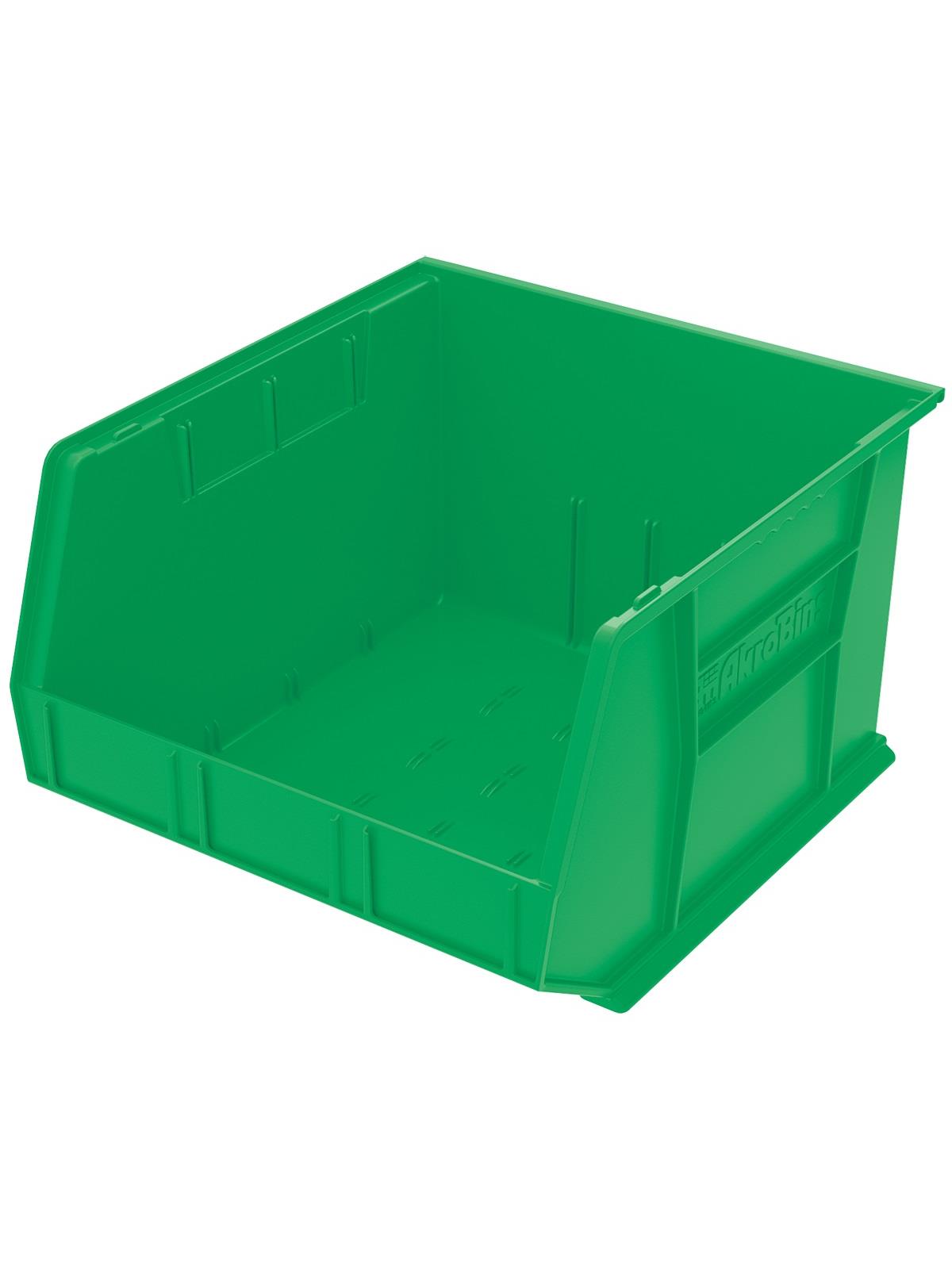 AkroBins are heavy-duty and securely stack on top of each other, sit on shelving, and hang from Akro-Mils racks, panels, rails and carts. Unaffected by weak acids and alkalis the sturdy one piece construction is water, rust and corrosion-proof. Finger grip allows for easy handling. Large label slot for easy identification of contents. Autoclavable up to 250° F. Guaranteed not to crack or break under normal load conditions as stated in the 1-year limited warranty. Optional dividers and labels available, see Related Items tab. AkroBins available in Red, Yellow, Blue, Green, Black, Stone, and Semi-Clear. FOB Shipping Point.