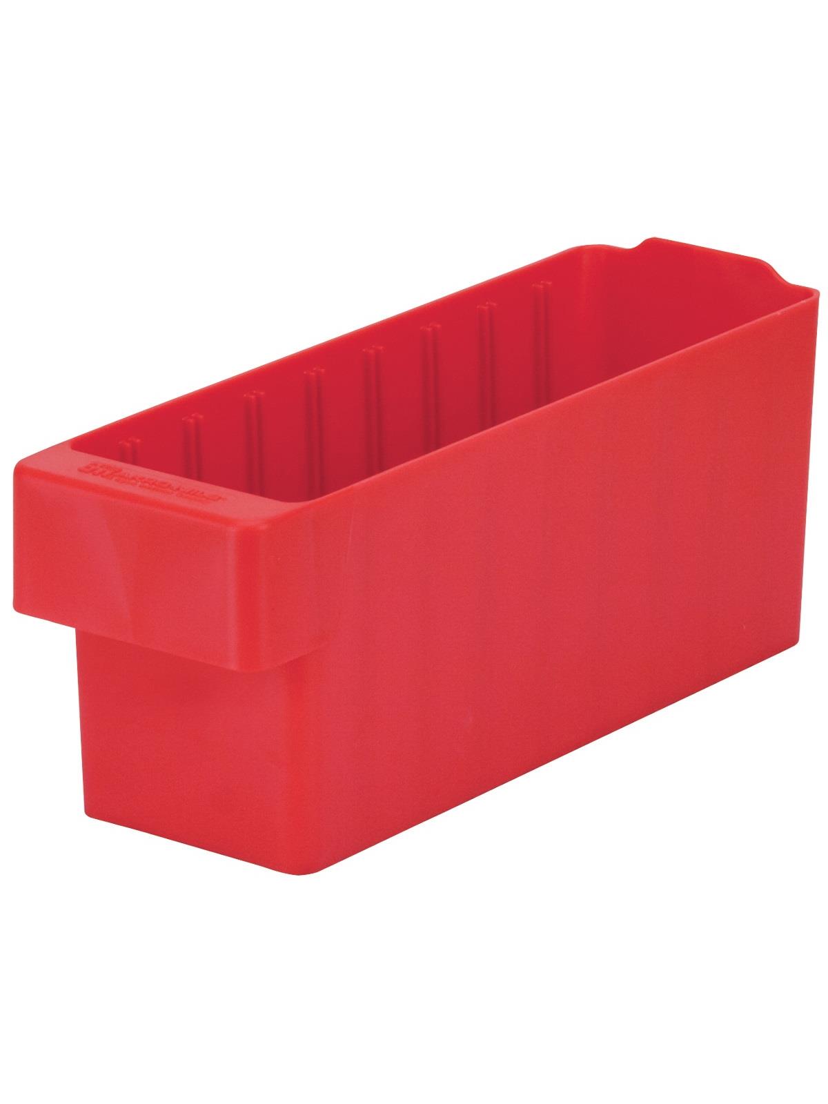 Offered in 12" or 18" depths to work with compatible shelving. Easy to label and color code inventory for quick identification of parts and supplies. Drawers can be stacked to optimize space. Wide front handle for easy gripping when AkroDrawers are loaded or contain heavy contents. Can be used with available shelving, racks, mobile carts or can be used by themselves. Sturdy back stop tab ensures AkroDrawers can hang securely from shelves. Dividers are available to keep contents neatly separated in drawers. Available in Blue, Gray, Yellow, Red and Clear - Minimum order required. FOB Shipping Point.