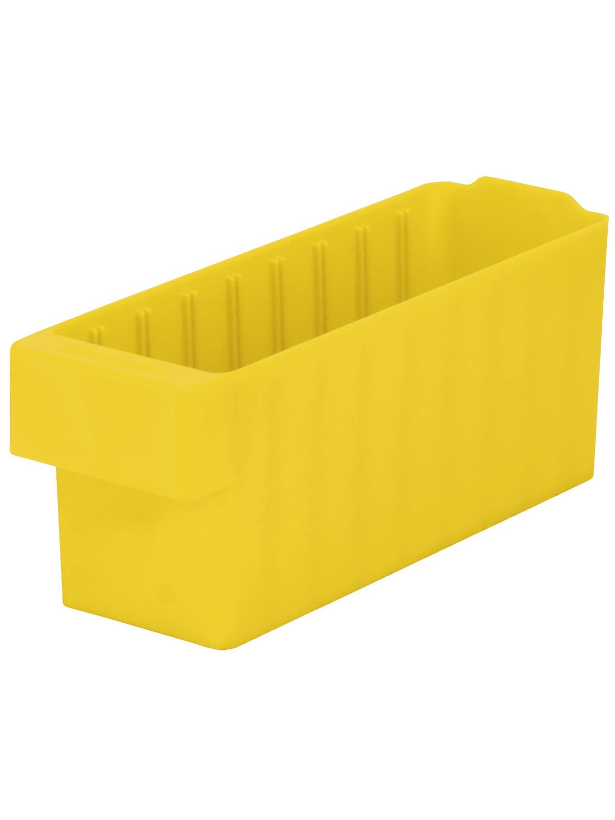 Offered in 12" or 18" depths to work with compatible shelving. Easy to label and color code inventory for quick identification of parts and supplies. Drawers can be stacked to optimize space. Wide front handle for easy gripping when AkroDrawers are loaded or contain heavy contents. Can be used with available shelving, racks, mobile carts or can be used by themselves. Sturdy back stop tab ensures AkroDrawers can hang securely from shelves. Dividers are available to keep contents neatly separated in drawers. Available in Blue, Gray, Yellow, Red and Clear - Minimum order required. FOB Shipping Point.