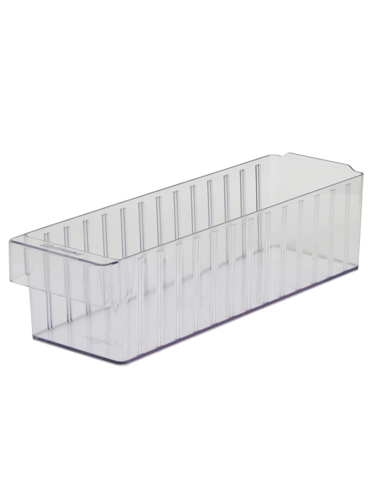 Offered in 12" or 18" depths to work with compatible shelving. Easy to label and color code inventory for quick identification of parts and supplies. Drawers can be stacked to optimize space. Wide front handle for easy gripping when AkroDrawers are loaded or contain heavy contents. Can be used with available shelving, racks, mobile carts or can be used by themselves. Sturdy back stop tab ensures AkroDrawers can hang securely from shelves. Dividers are available to keep contents neatly separated in drawers. Available in Blue, Gray, Yellow, Red and Clear - Minimum order required. FOB Shipping Point.