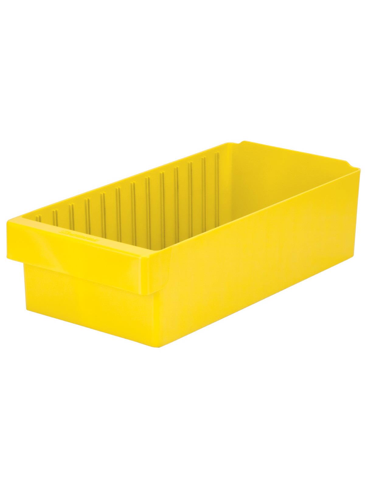Offered in 12" or 18" depths to work with compatible shelving. Easy to label and color code inventory for quick identification of parts and supplies. Drawers can be stacked to optimize space. Wide front handle for easy gripping when AkroDrawers are loaded or contain heavy contents. Can be used with available shelving, racks, mobile carts or can be used by themselves. Sturdy back stop tab ensures AkroDrawers can hang securely from shelves. Dividers are available to keep contents neatly separated in drawers. Available in Blue, Gray, Yellow, Red and Clear - Minimum order required. FOB Shipping Point.