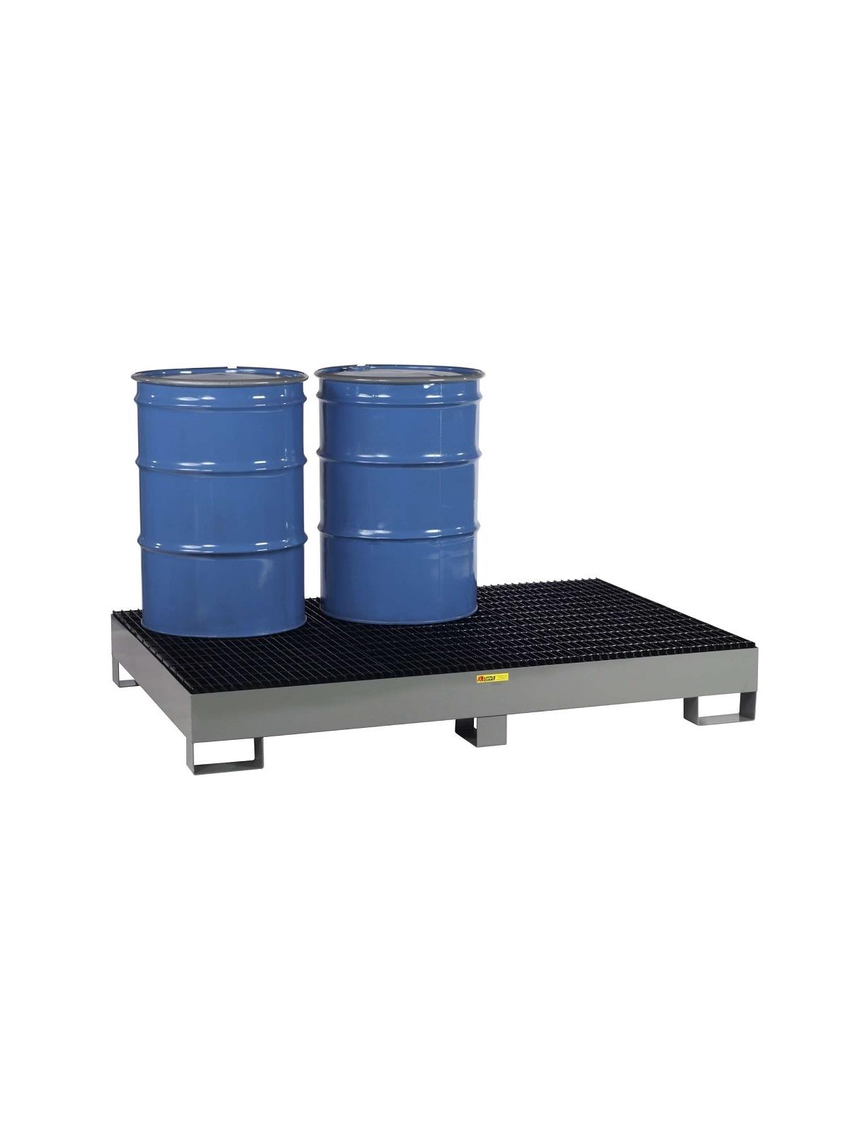 Heavy gauge steel construction for storage of materials that are not compatible with plastic. Sumps and ramps have durable powder coated finish. Welded bar grating can be removed for cleaning. Fork Liftable Ramp optional. FOB Shipping Point.