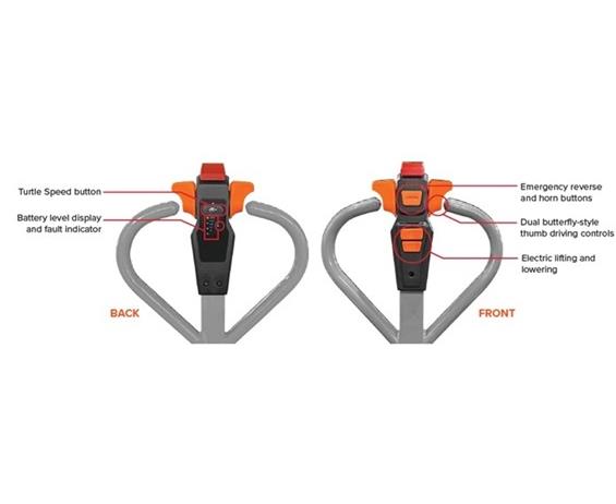 This pallet jack is an economical, quiet, very low maintenance and perfect for light and medium duty jobs. Compact design, low service weight and small turning radius makes it ideal for loading docks and use within narrow aisles. Tiller head handle is designed for comfortable and ergonomic operation. A unique fork design allows for easy entrance and exit from pallets. 24V DC permanent magnet motor. Enclosed design and one-piece steel battery cover provides protection to the main components. FOB Shipping Point.