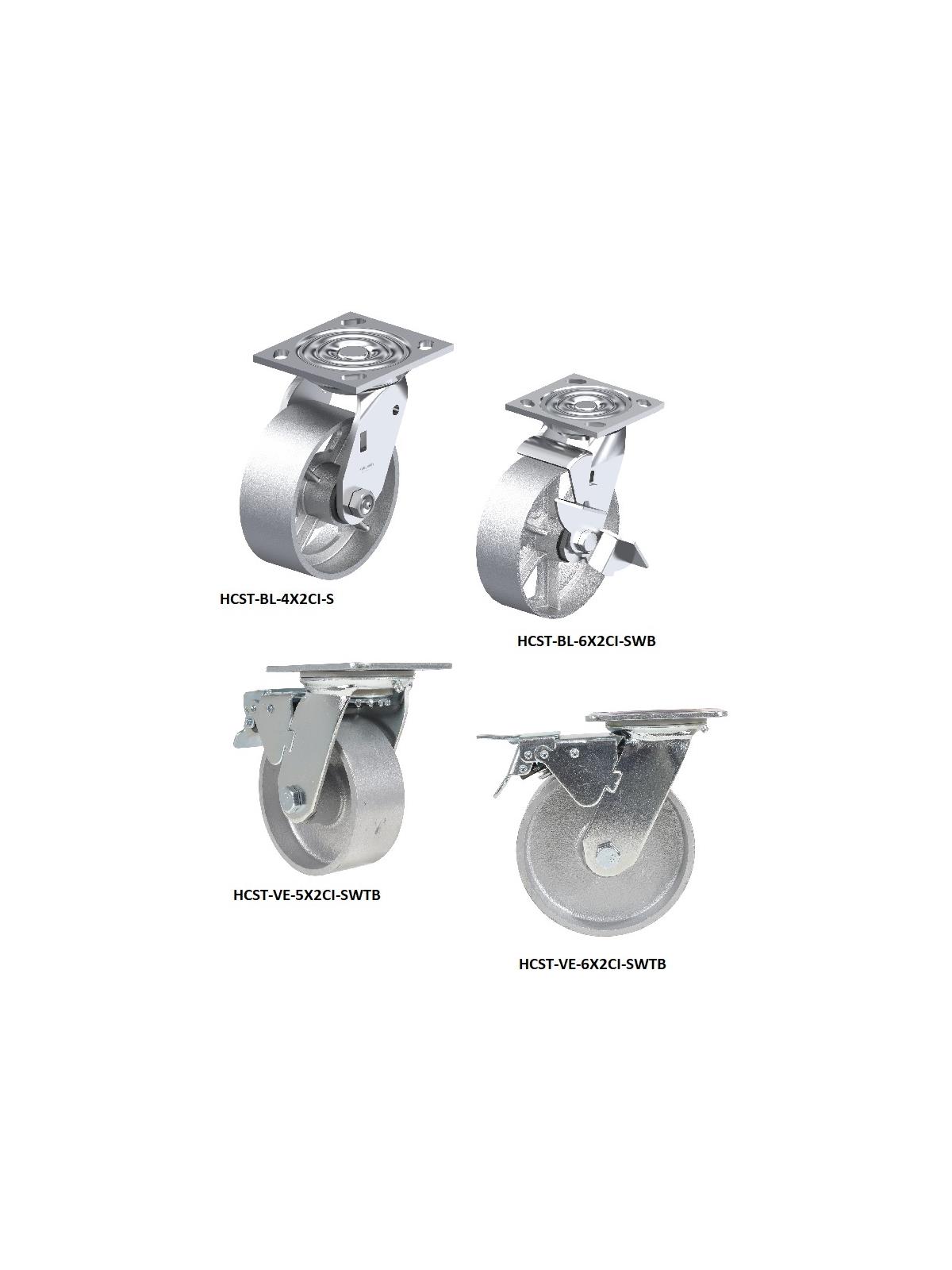 HCST-BL-5X2CI-S Swivel Casters 5" x 2" 1000 6-1-2" 4" x 4-1/2" 8 $90.49