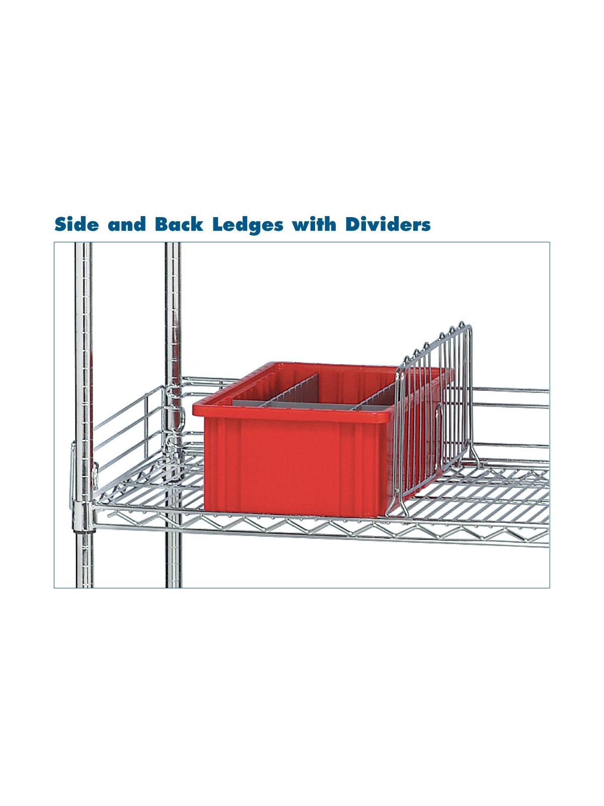 Side and Back Ledges - Ledges act as a perimeter to retain shelf items and prevent anything from falling off. Chrome finish.