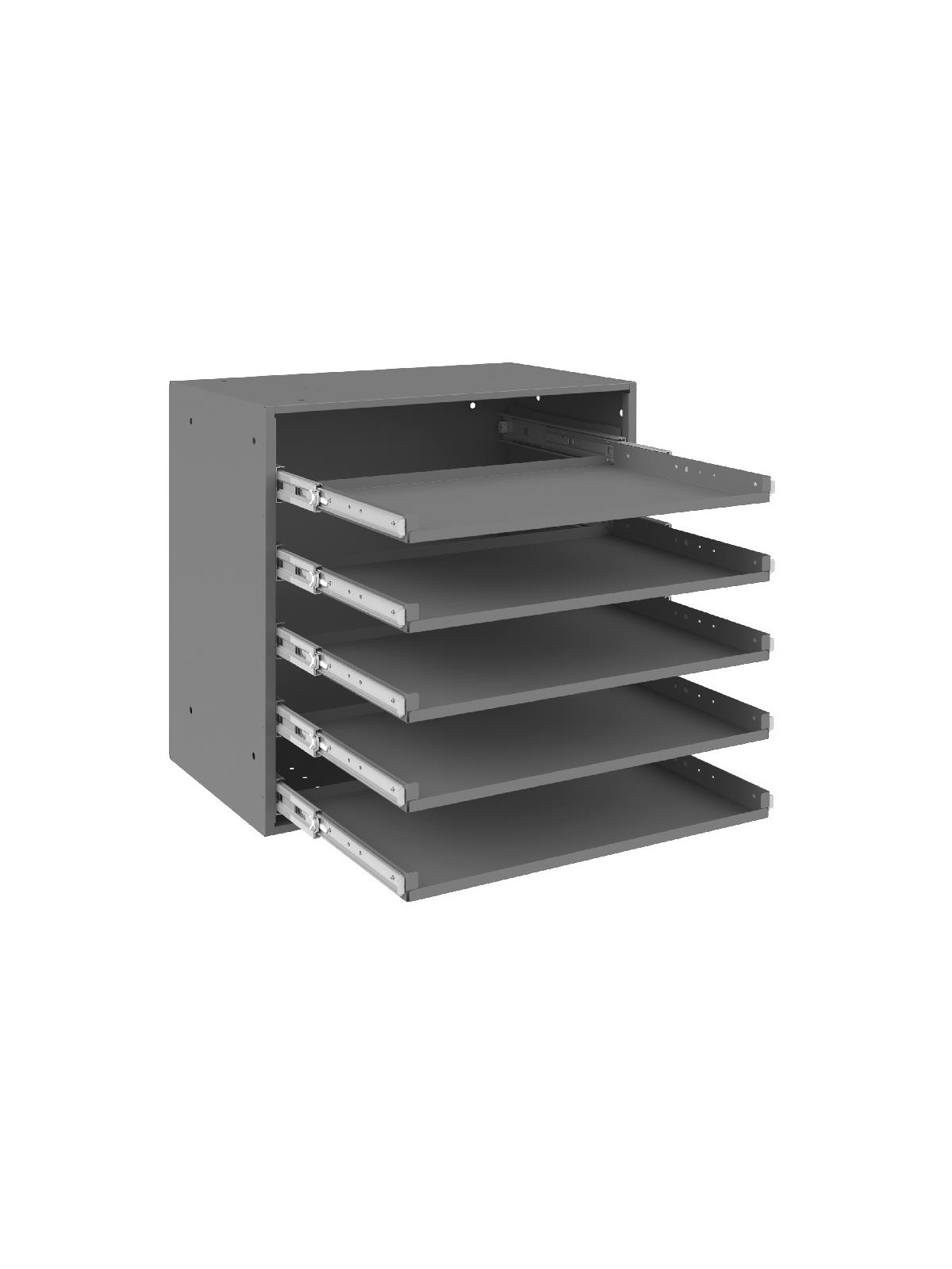 Efficient storage and organization for a variety of parts and components. Each compartment box interior is manufactured of polypropylene with scooped bottoms, both front and back for easy parts removal. Rugged steel, all-welded cabinets are reinforced for rigidity. Use on the workbench, counter, or carry to the job site with convenient thumb-grip handles. Easy Glide Slide Racks hold up to 40 lbs. per cradle. The Heavy Duty Bearing Slide Racks hold up to 75 lbs. per cradle. Finished in acid and rust resistant Gray powder coating. Order cabinets to accommodate 2, 4, or 6 boxes. Compartment boxes and bases sold separately, compartment boxes sold in case quantities. FOB Shipping Point.