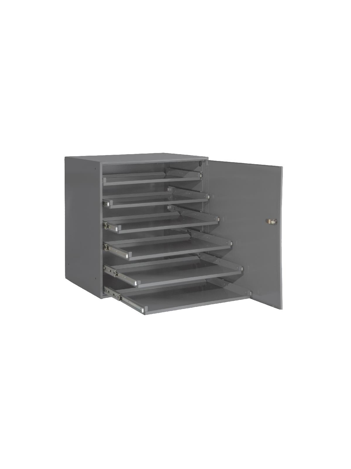 Efficient storage and organization for a variety of parts and components. Each compartment box interior is manufactured of polypropylene with scooped bottoms, both front and back for easy parts removal. Rugged steel, all-welded cabinets are reinforced for rigidity. Use on the workbench, counter, or carry to the job site with convenient thumb-grip handles. Easy Glide Slide Racks hold up to 40 lbs. per cradle. The Heavy Duty Bearing Slide Racks hold up to 75 lbs. per cradle. Finished in acid and rust resistant Gray powder coating. Order cabinets to accommodate 2, 4, or 6 boxes. Compartment boxes and bases sold separately, compartment boxes sold in case quantities. FOB Shipping Point.