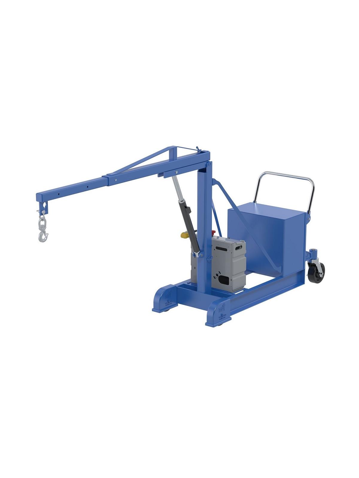 This crane has an adjustable boom to allow for maximum adjustments and versatility to lift a variety of loads. The boom is raised with a manual hydraulic hand pump or a push of a button on DC powered units. The boom also telescopes out for a greater reach. The counterbalance design eliminates the need for front legs, making the unit easier to maneuver and ideal for reaching tight, hard to reach areas. Units roll on two (2) rigid 8" x 2" glass-filled nylon and two (2) swivel 8" x 3" phenolic casters with side brake. FOB Shipping Point.