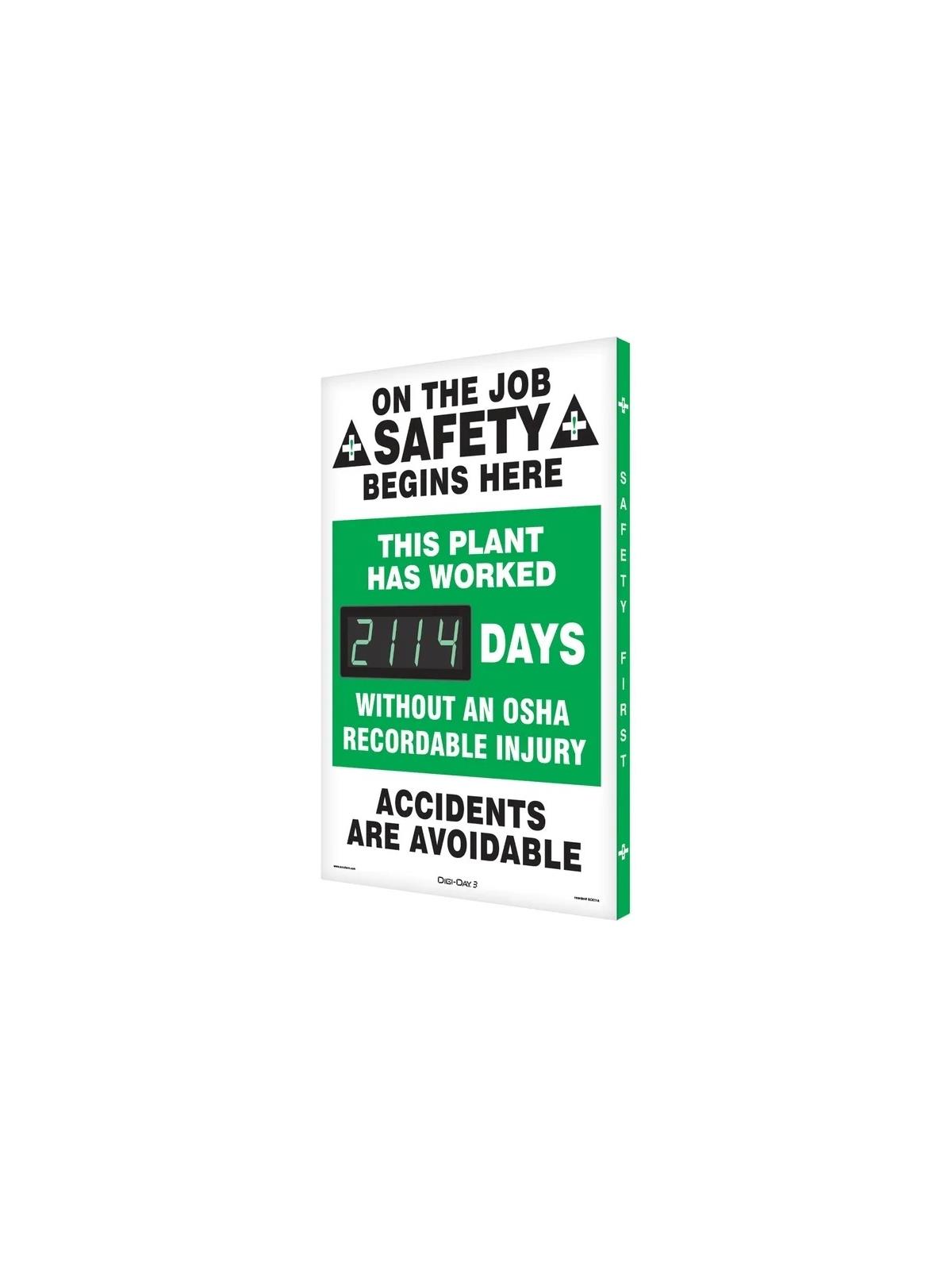 • Count days without an accident in green, or in the event of an accident, set the display to red until you meet your new safe days goal.