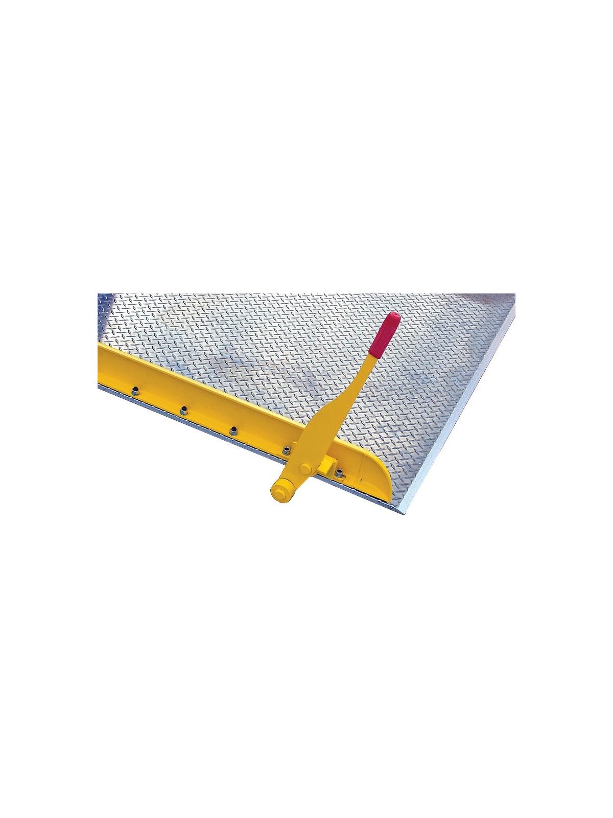 Manual lift lever raises dockboard off the floor for easy forklift truck positioning. Lever falls to rest automatically when board is lifted.