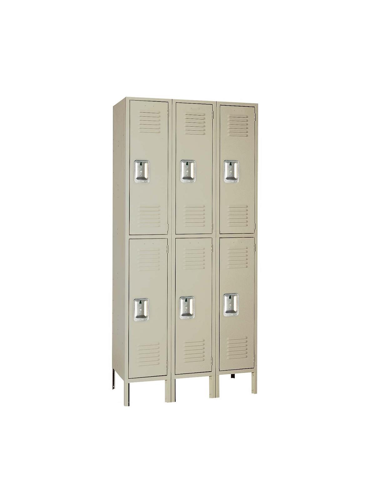Double Tier Lockers - Features steel recessed handle and hooks for hanging clothing and other items.