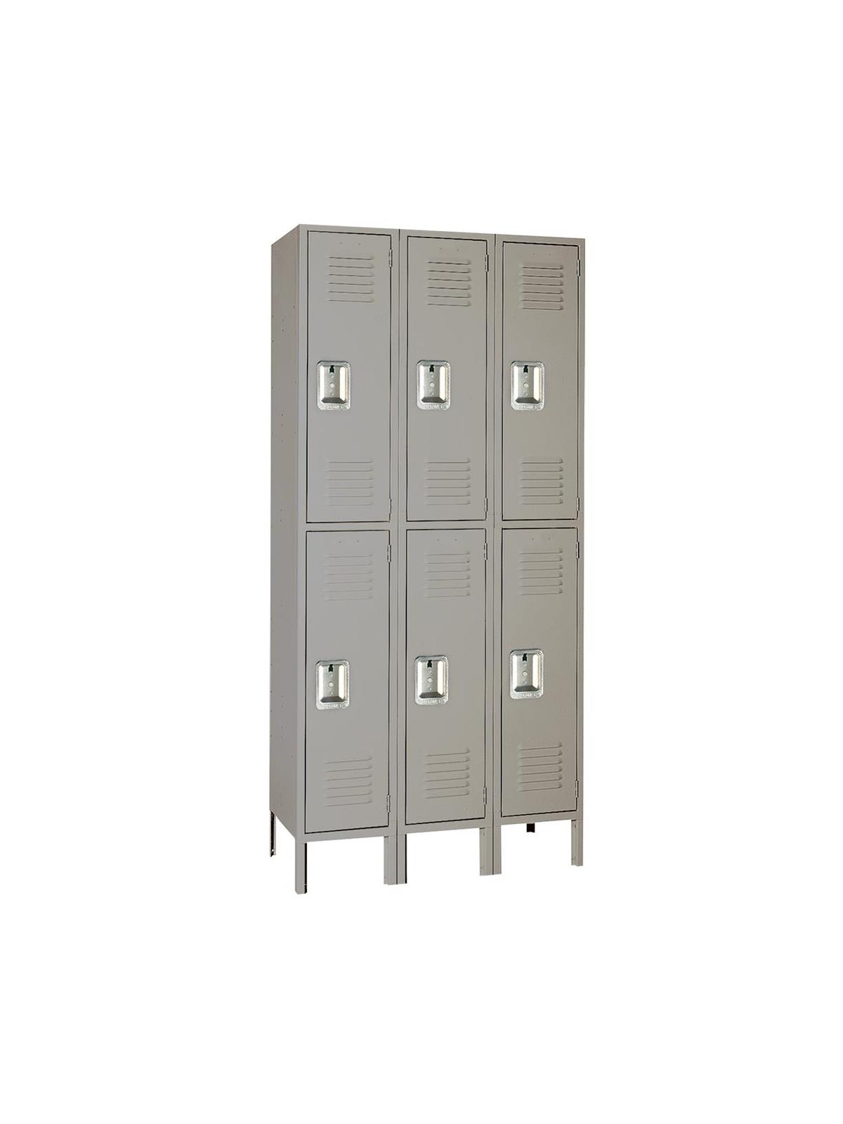 Double Tier Lockers - Features steel recessed handle and hooks for hanging clothing and other items.