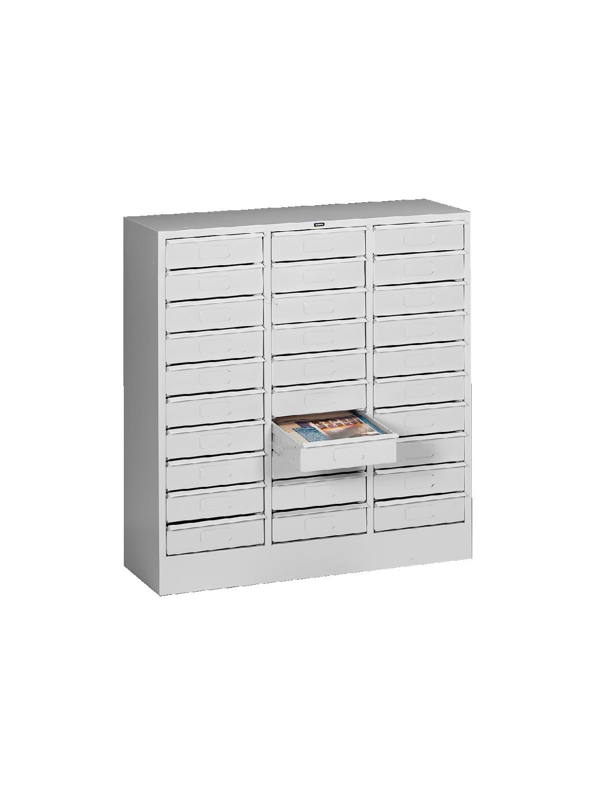30-Drawer Organizers feature an integrated label holder and steel drawers with no suspensions or slides for worry-free operation. A low-cost option for storing and organizing small parts and supplies.