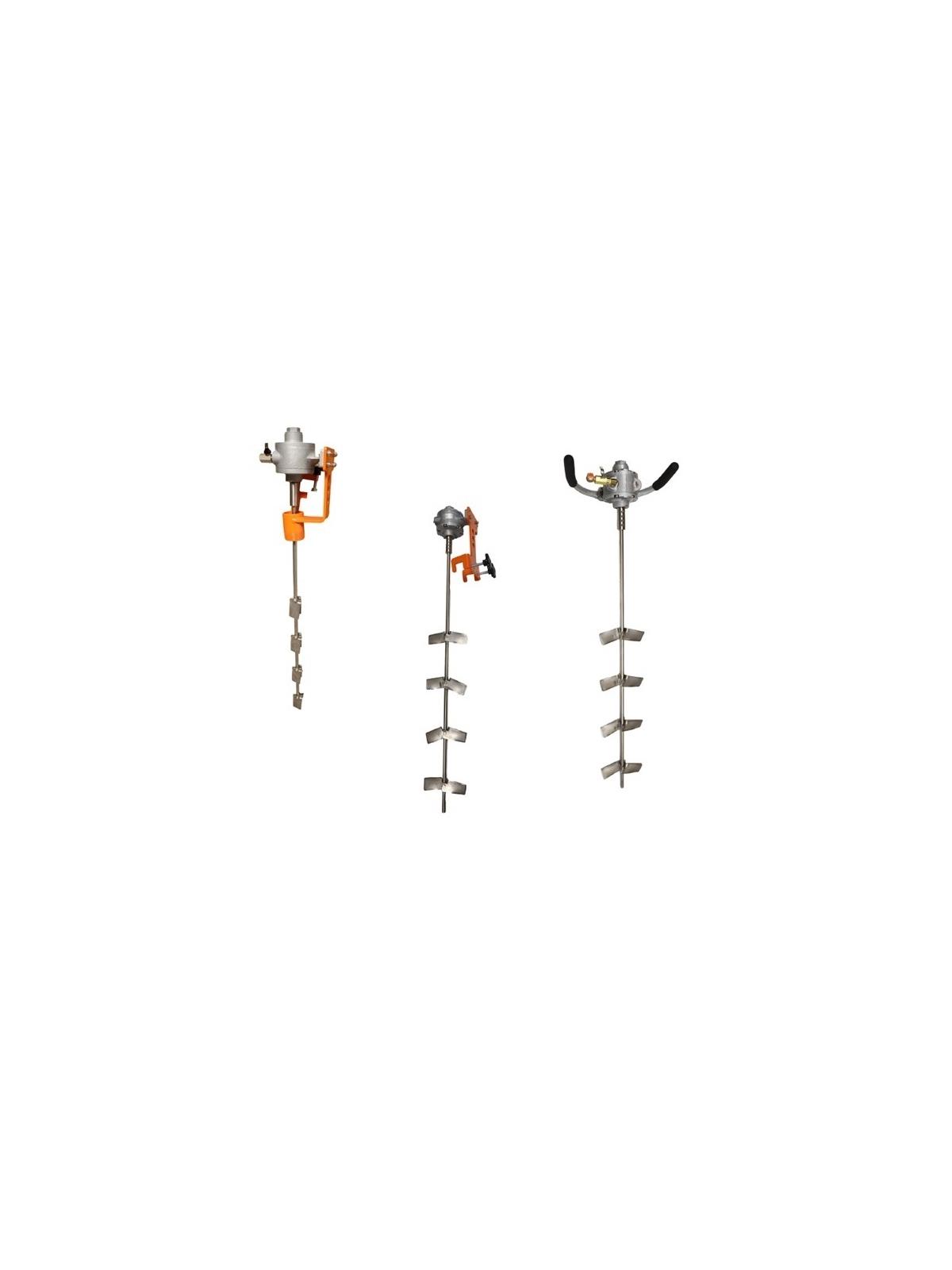 These drum mixers have collapsible propellers that fit through the bung openings of 55-gallon drums and with a NPT opening size of 2", so there's no need to remove the lid. Also known as direct-drive mixers, they operate at high speeds for rapid turnover. Use them to mix liquids with a viscosity similar to water and light oils. Adjust mixing speed with the needle valve. Propellers are left hand and move clockwise when viewed from above to direct flow downward for efficient mixing. Choose a mixer with more propellers for faster and more thorough mixing. The motor is angled 6 degrees toward the center of a drum or container, preventing mixer to side-wall contact and for best mixing agitation with 6" blades. A complete mixer assembly (weighing less than 20 lbs.) easily transfers from drum-to-drum in seconds, making them very portable. FOB Shipping Point.