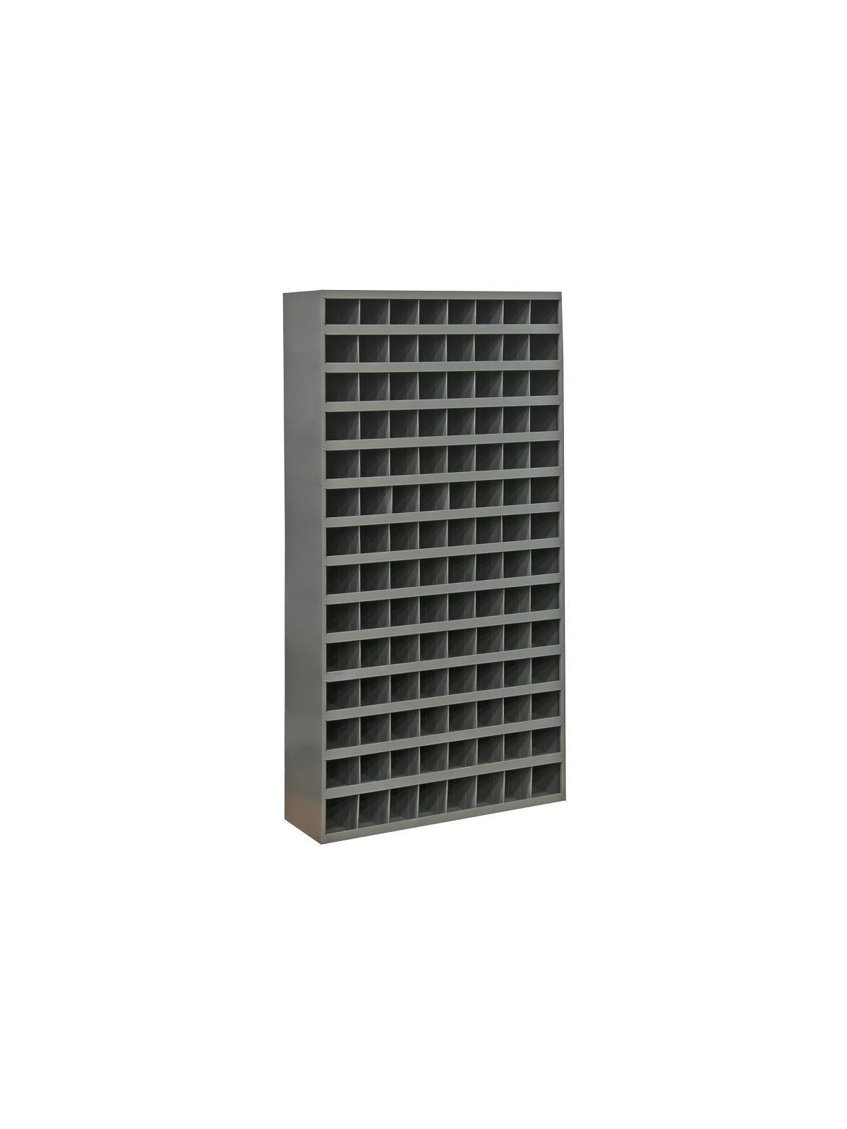 Fully hemmed 1-1/8" bin fronts to hold labels and retain parts. Roll-formed sides for increased strength and stability. Newly redesigned slope shelves. Ribbed and hemmed dividers provide added strength. Optional base and bin labels available. Ships fully assembled, ready to use. FOB Shipping Point.