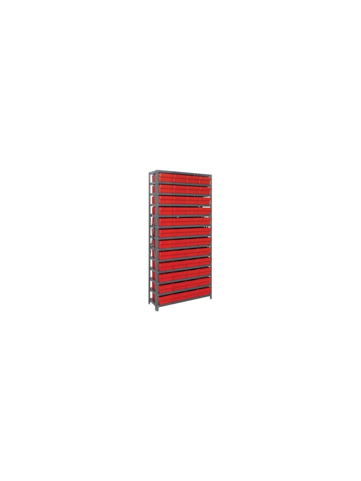 Heavy Duty Steel Shelving Units - Save time locating parts using our tough Euro Drawers with our sturdy open or closed steel shelving. 36" wide x 75" or 39" high units offer heavy-duty, high grade shelving with a 400 lb. capacity per shelf. Closed shelving provides a dust free environment for stored parts. Shelving is Gray in color. Drawers are available in Blue, Yellow, Gray or Red. FOB Shipping Point.