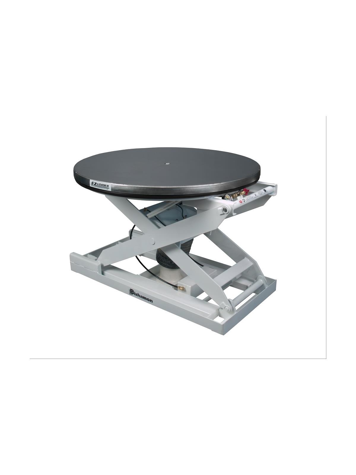 The Bishamon EZ Loader® is a state-of-the-art automatic pallet positioner designed to make loading and unloading faster, safer, and more efficient. Featuring lifting capacities up to 4000 lbs., an integral turntable top, entrapped rollers for stable operation, and hinged maintenance bars for added security, the EZ Loader® sets new standards in ergonomic design. Choose from five models or the economical EZ X Loader™ version and customize with optional accessories to meet specific needs and applications. Transportable with a forklift or an optional portability kit, the EZ Loader® arrives fully assembled and ready for use. FOB Shipping Point.
