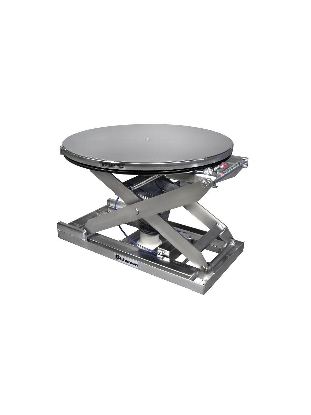 The Bishamon EZ Loader® is a state-of-the-art automatic pallet positioner designed to make loading and unloading faster, safer, and more efficient. Featuring lifting capacities up to 4000 lbs., an integral turntable top, entrapped rollers for stable operation, and hinged maintenance bars for added security, the EZ Loader® sets new standards in ergonomic design. Choose from five models or the economical EZ X Loader™ version and customize with optional accessories to meet specific needs and applications. Transportable with a forklift or an optional portability kit, the EZ Loader® arrives fully assembled and ready for use. FOB Shipping Point.