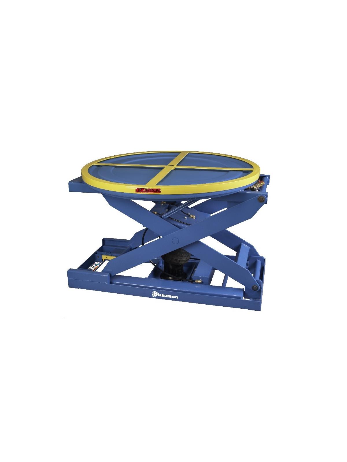 The Bishamon EZ Loader® is a state-of-the-art automatic pallet positioner designed to make loading and unloading faster, safer, and more efficient. Featuring lifting capacities up to 4000 lbs., an integral turntable top, entrapped rollers for stable operation, and hinged maintenance bars for added security, the EZ Loader® sets new standards in ergonomic design. Choose from five models or the economical EZ X Loader™ version and customize with optional accessories to meet specific needs and applications. Transportable with a forklift or an optional portability kit, the EZ Loader® arrives fully assembled and ready for use. FOB Shipping Point.