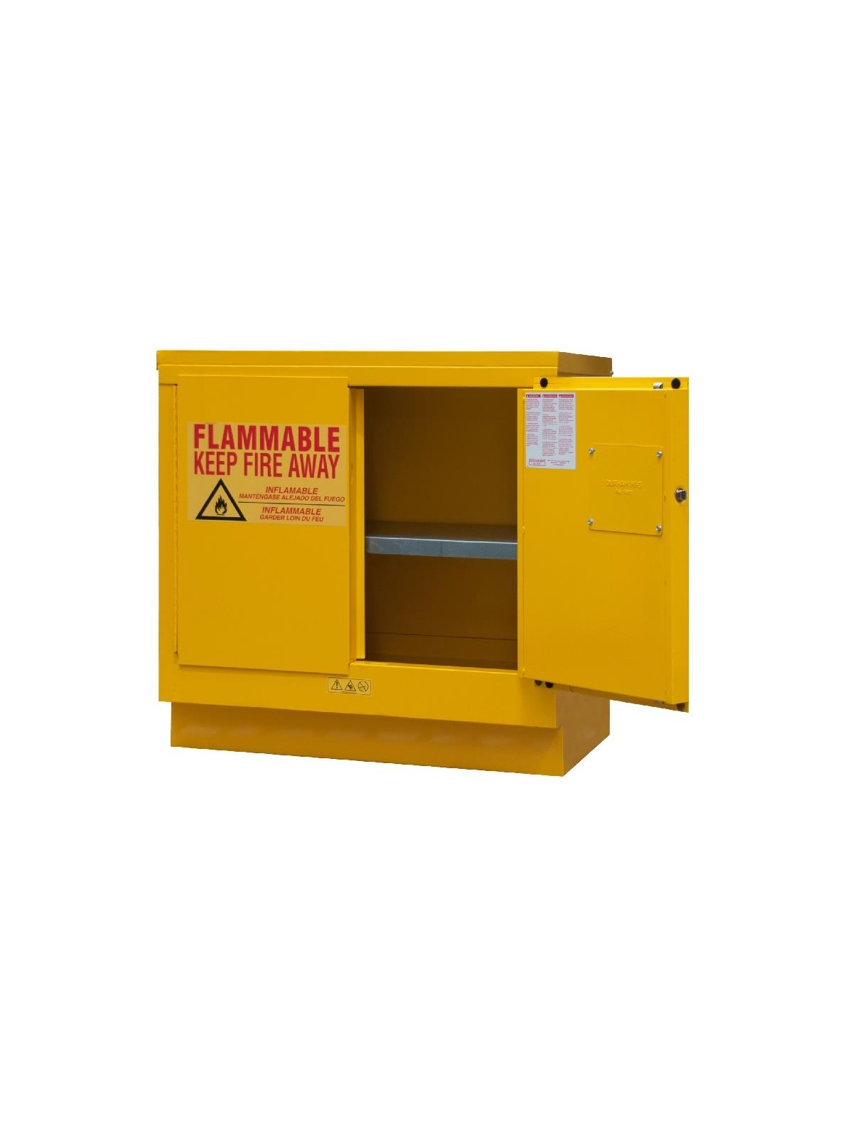 Flammable Storage Cabinets are required by OSHA and UFC in commercial and industrial facilities where flammable liquids are used and stored. Cabinets feature recessed lockable paddle latch and 3 point locking systems which greatly improves security. Bunged air vents on each side of the cabinet allows for greater ventilation. Constructed of all welded Heavy Duty Steel.