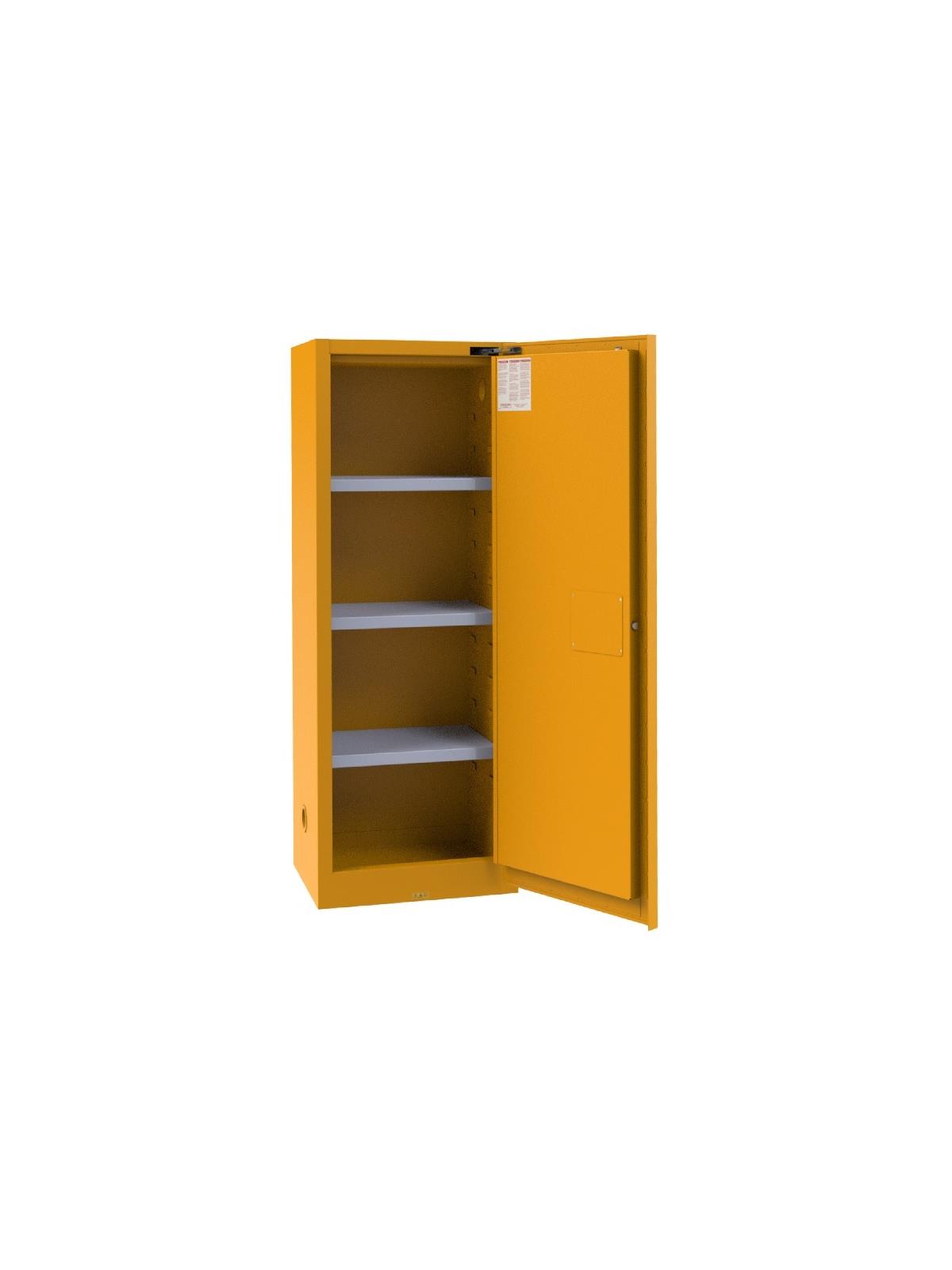 Flammable Storage Cabinets are required by OSHA and UFC in commercial and industrial facilities where flammable liquids are used and stored. Cabinets feature recessed lockable paddle latch and 3 point locking systems which greatly improves security. Bunged air vents on each side of the cabinet allows for greater ventilation. Constructed of all welded Heavy Duty Steel.
