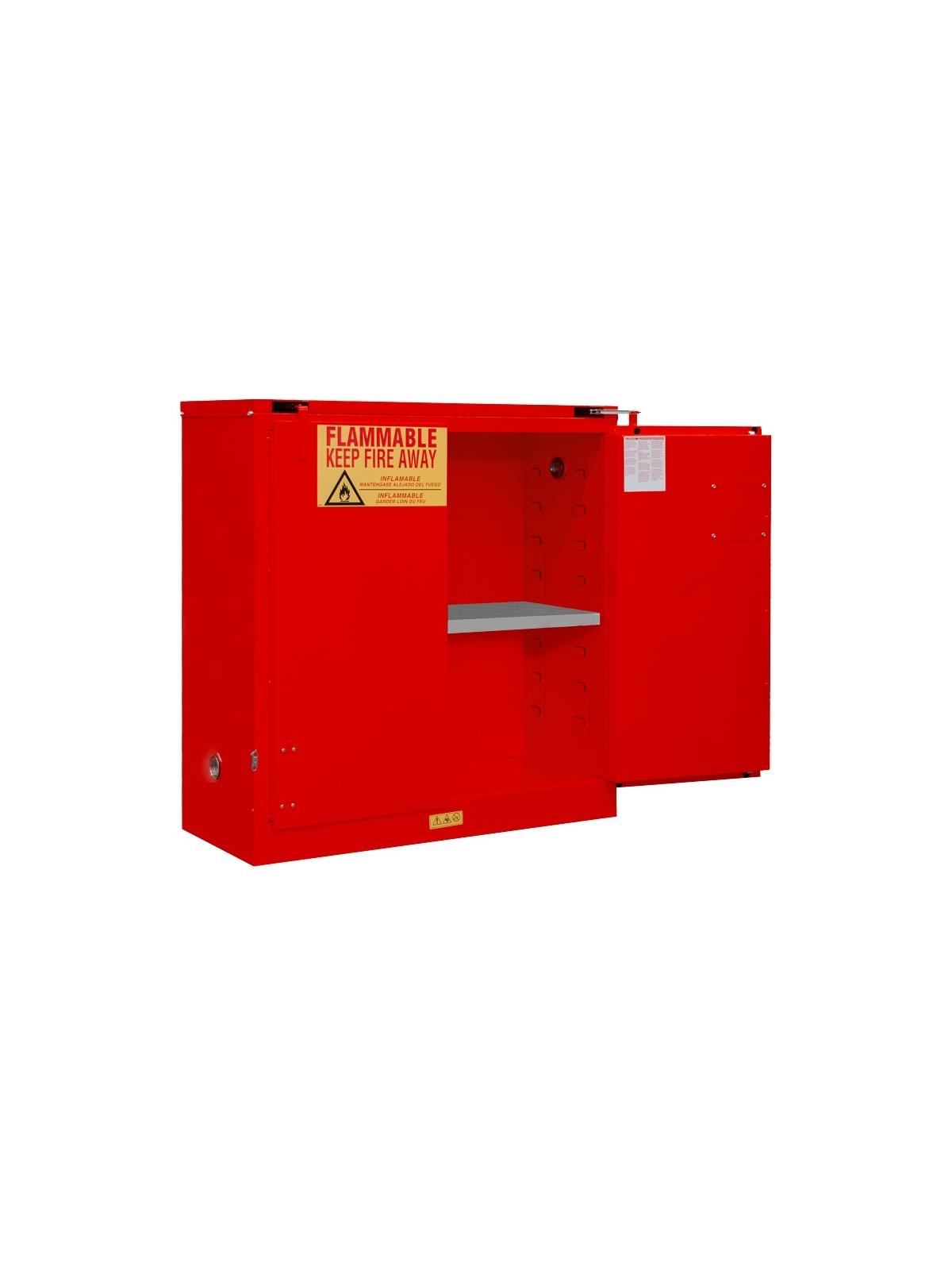 Flammable Storage Cabinets are required by OSHA and UFC in commercial and industrial facilities where flammable liquids are used and stored. Cabinets feature recessed lockable paddle latch and 3 point locking systems which greatly improves security. Bunged air vents on each side of the cabinet allows for greater ventilation. Constructed of all welded Heavy Duty Steel.