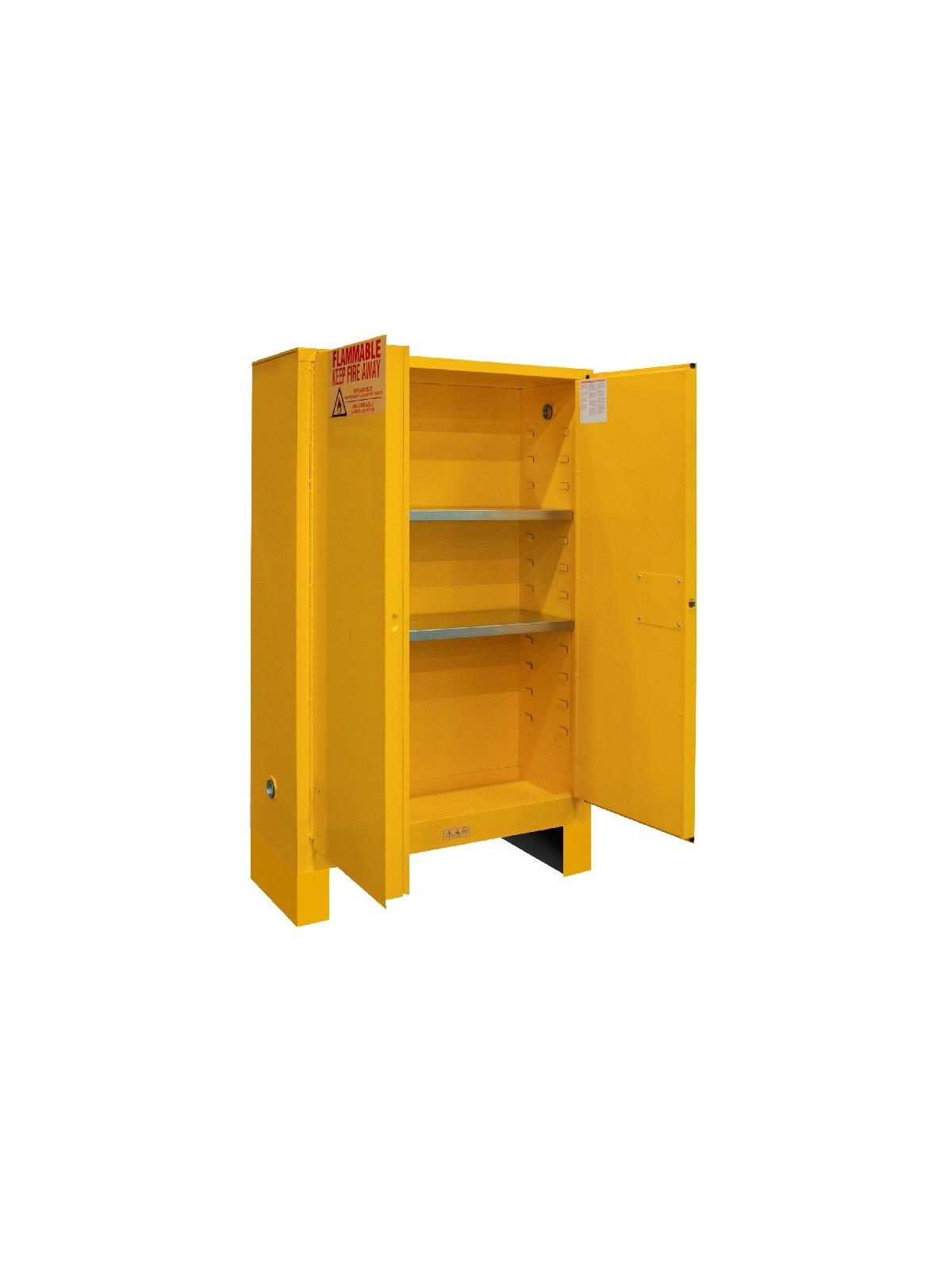 Flammable Storage Cabinets are required by OSHA and UFC in commercial and industrial facilities where flammable liquids are used and stored. Cabinets feature recessed lockable paddle latch and 3 point locking systems which greatly improves security. Bunged air vents on each side of the cabinet allows for greater ventilation. Constructed of all welded Heavy Duty Steel.