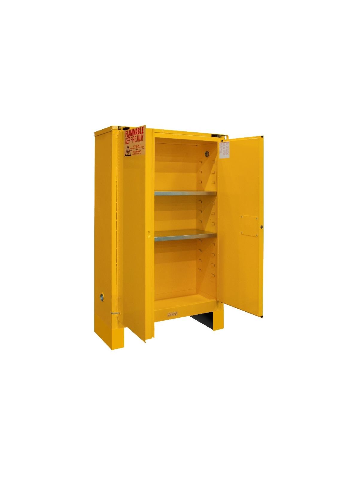 Flammable Storage Cabinets are required by OSHA and UFC in commercial and industrial facilities where flammable liquids are used and stored. Cabinets feature recessed lockable paddle latch and 3 point locking systems which greatly improves security. Bunged air vents on each side of the cabinet allows for greater ventilation. Constructed of all welded Heavy Duty Steel.