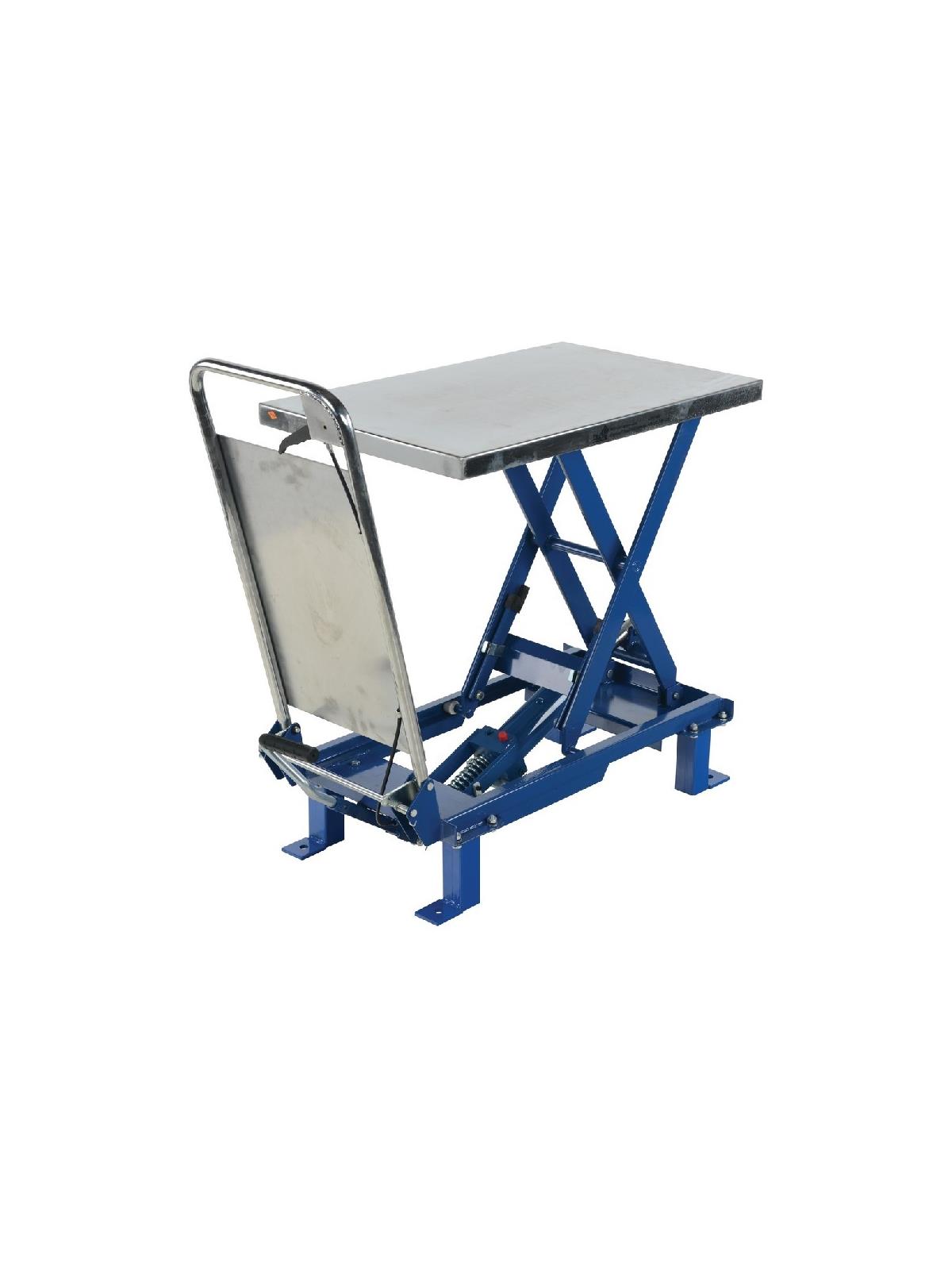 Foot Pump Scissor Lift Tables are used by all types of manufacturing and warehousing facilities. Features torsion tubes for side to side stability, pressure flow control valve for controlled lowering, and foot pump. Rugged welded steel construction. Painted blue finish. FOB Shipping Point.