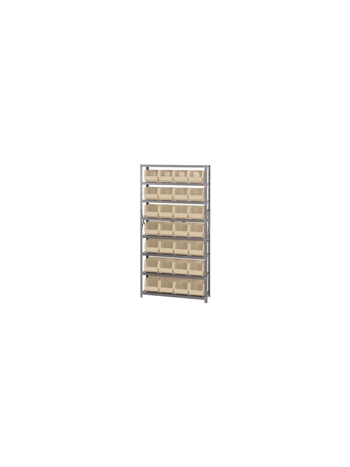 Sold complete with shelving and bins. 350 lb. capacity per shelf. Bins available in Yellow, Blue, Red, Green, Ivory and Black. FOB Shipping Point.