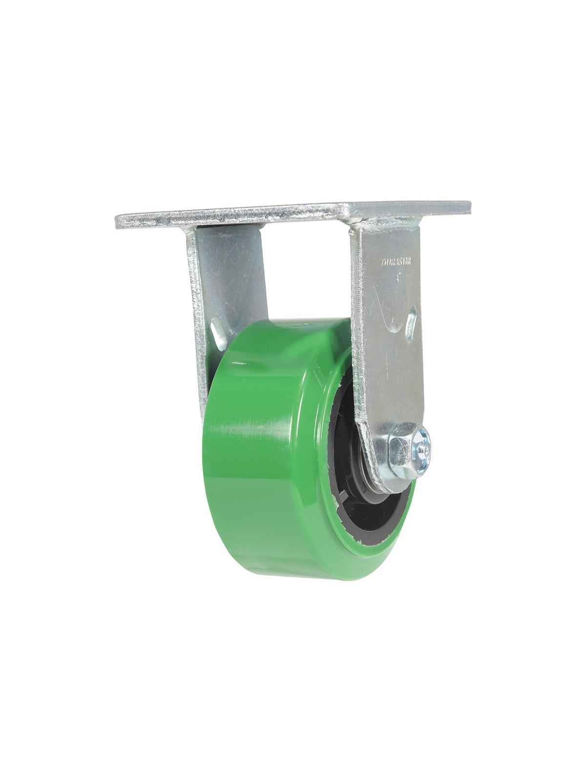 Made of professional grade polyurethane, designed with a new liquid cast flow affusion that ensures a 100% bond to core and 0% trapped air. The unique formula assists in avoiding disintegration that can occur in most plastic wheels, and provides five times longer wheel tread life than standard polyurethane. This caster is resistant to oil, grease, water and most solvents. Top plate size 4" x 4-1/2". FOB Shipping Point.