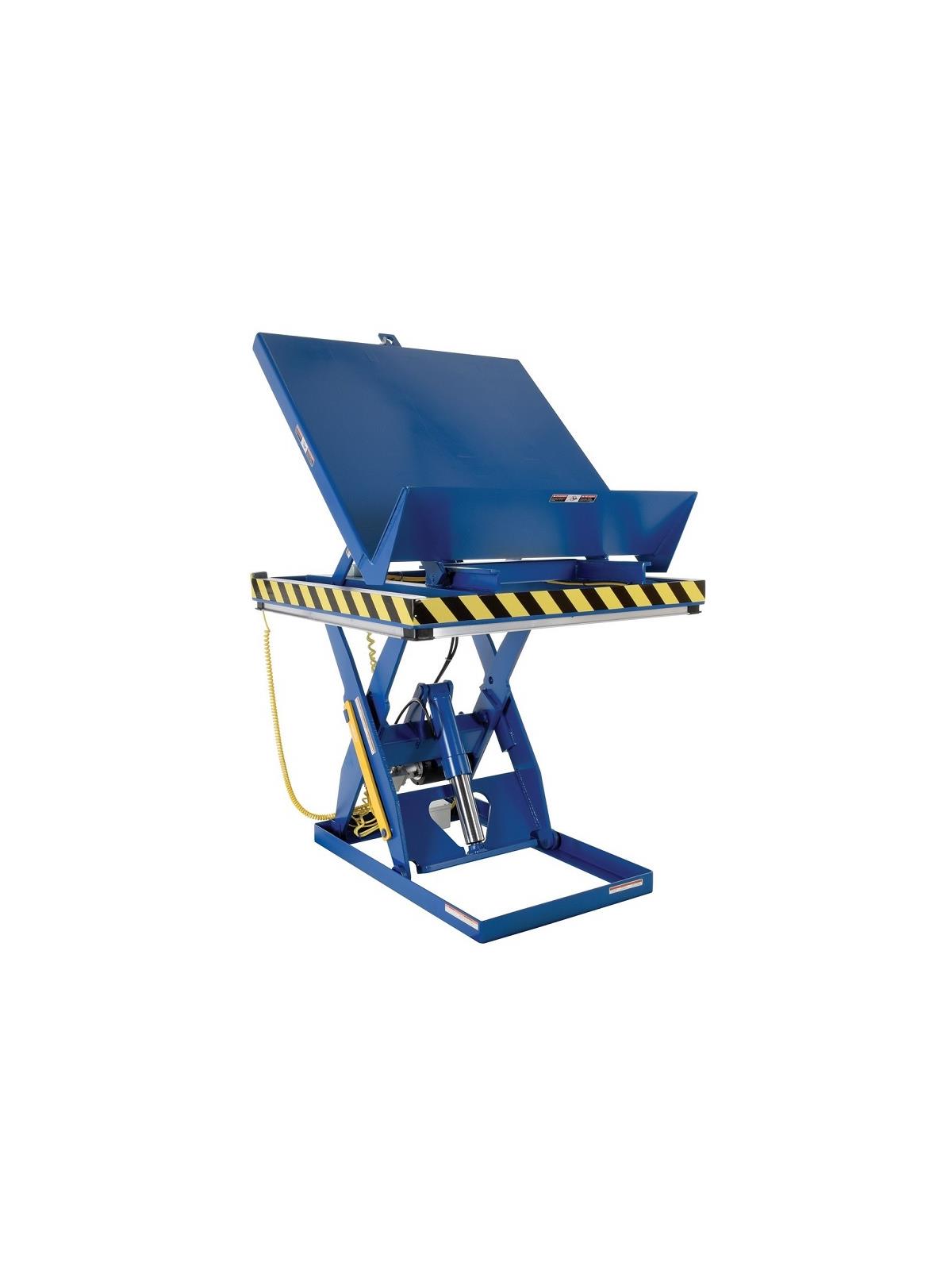 Features toe/pinch guard. 4 push-button hand pendant control on an 8' coil cord. Emergency stop if hose breaks. Fused 24V push button control. Lock-in place safety maintenance support. 45° maximum tilt, 36" vertical travel. FOB Shipping Point.