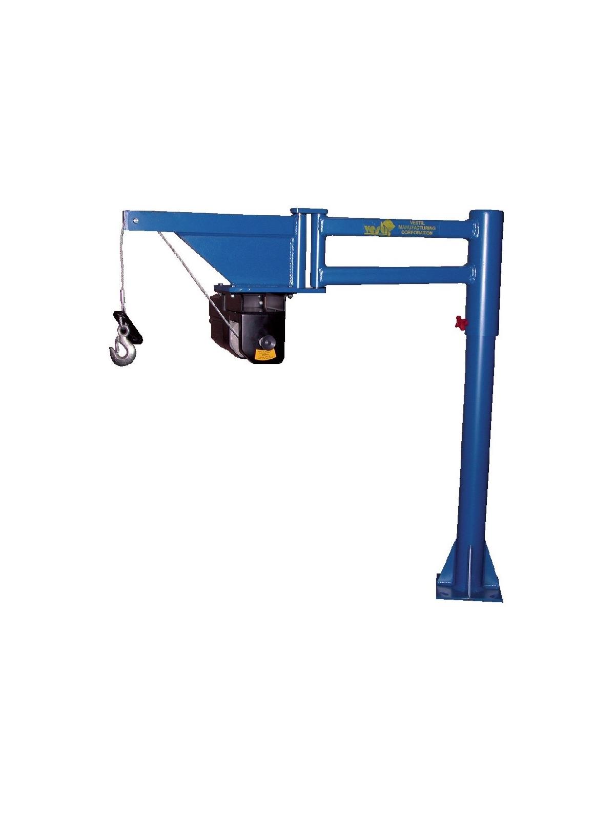 Hand crank winch is standard-powered winch optional. Van floor to raised hook height is 36-1/8". Swing reaches 0" minimum to 39-3/4" maximum. A back and time saver. Mounting plate is 8" x 8". HVAN-J-DC includes battery powered winch with 46' of cable. FOB Shipping Point.