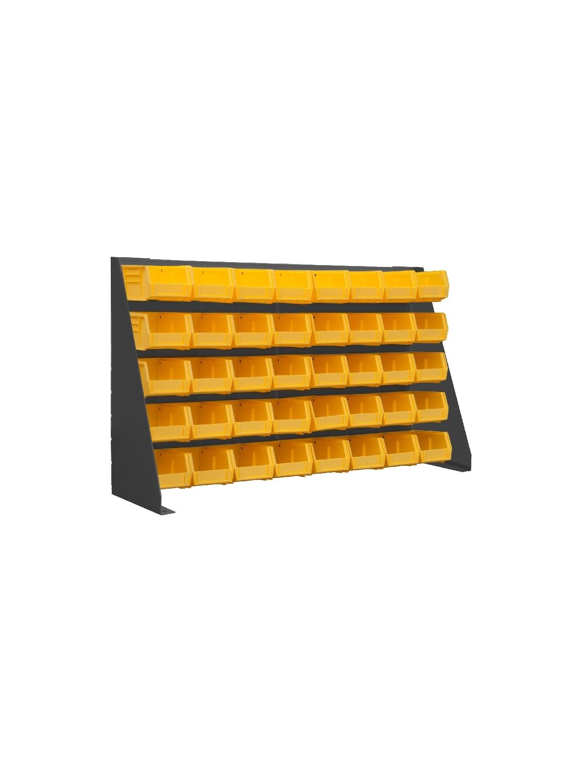 Louvers accommodate all sizes of Hook-On-Bins® (Bins are sold separately.) Tray shelves can be purchased as an accessory 1/4" holes for wall mounting - hardware not included. Durable, textured, powder coat finish. FOB Shipping Point.